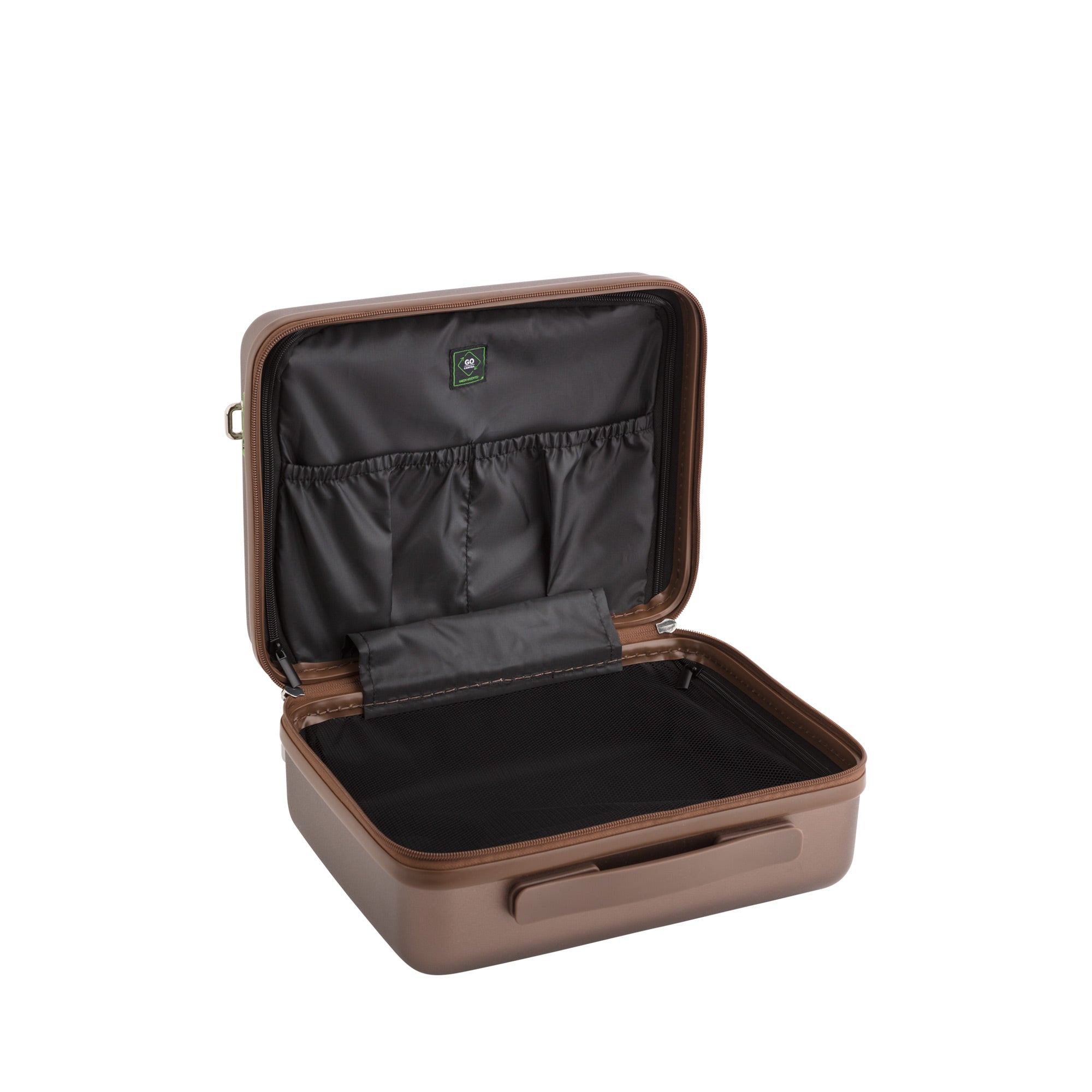 La trousse de beauté Tinny de la ligne Carpisa complète votre équipement de voyage avec un accessoire élégant, compact et fonctionnel. Fabriquée en film ABS + PC recyclé, avec une doublure intérieure 100 % R-PET, elle reflète l’approche durable et moderne de la collection Green Oriented. Son effet métallique, semblable à de l’aluminium, obtenu grâce à des composés spéciaux, lui confère une esthétique sophistiquée et contemporaine, en parfaite harmonie avec les valises à roulettes de la ligne. Elle est équipée d’une bandoulière réglable et amovible pour un transport aisé, d’une fermeture éclair YKK et d’un intérieur organisé avec des compartiments idéaux pour les produits de beauté, les accessoires personnels et les petits objets de voyage.