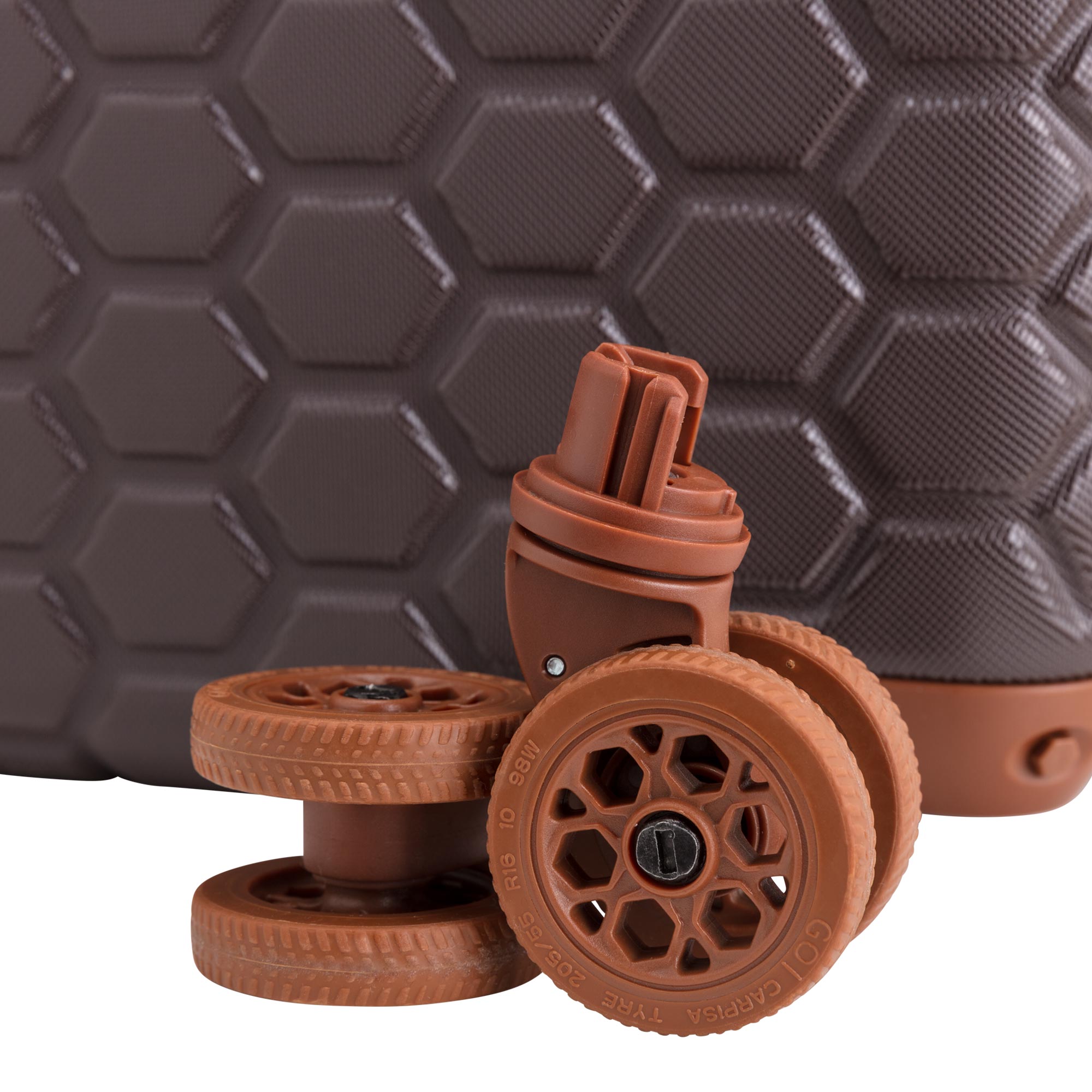 Roues doubles détachables par bouton, ultra-silencieuses et Système de chariot innovant et breveté Carpisa Lab, avec système de réglage ergonomique de la hauteur et conception innovante anti-oscillation. Poignée latérale. Extensible.