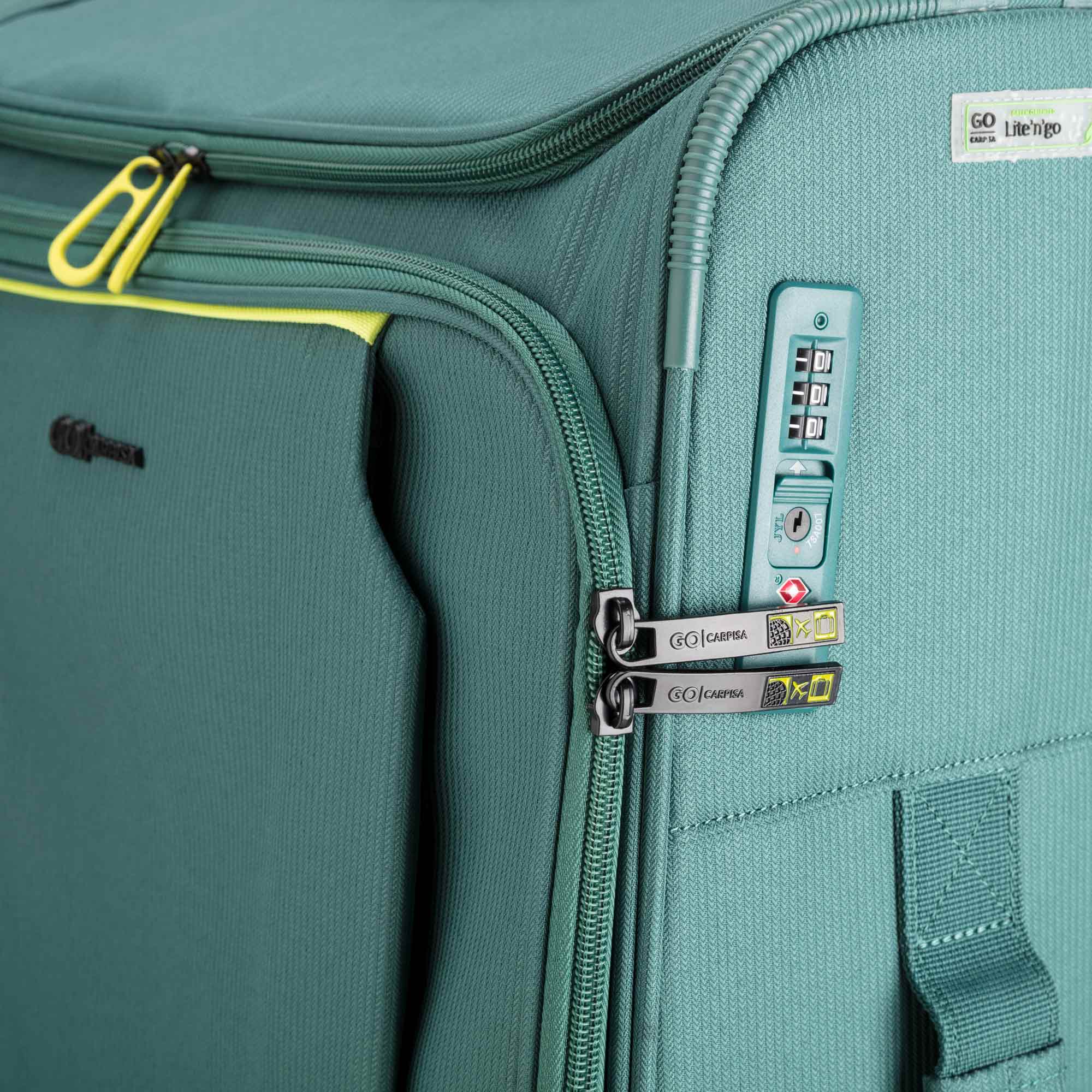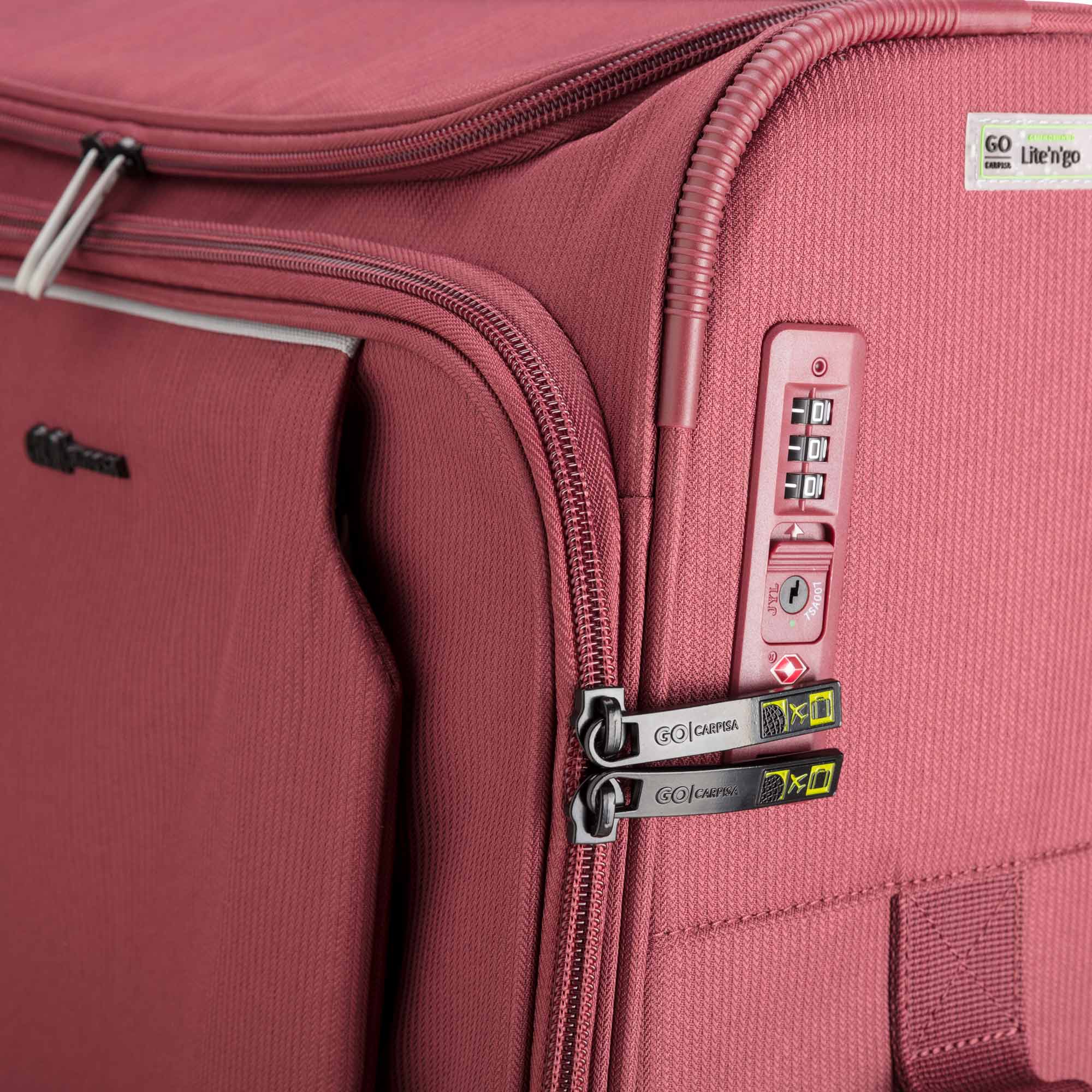 Le trolley semi-rigide de taille moyenne (M) de la gamme Lite N Go de Carpisa, fabriqué en R-PET à la texture légèrement striée, se caractérise par un design simple et essentiel, tout en étant souple et léger.