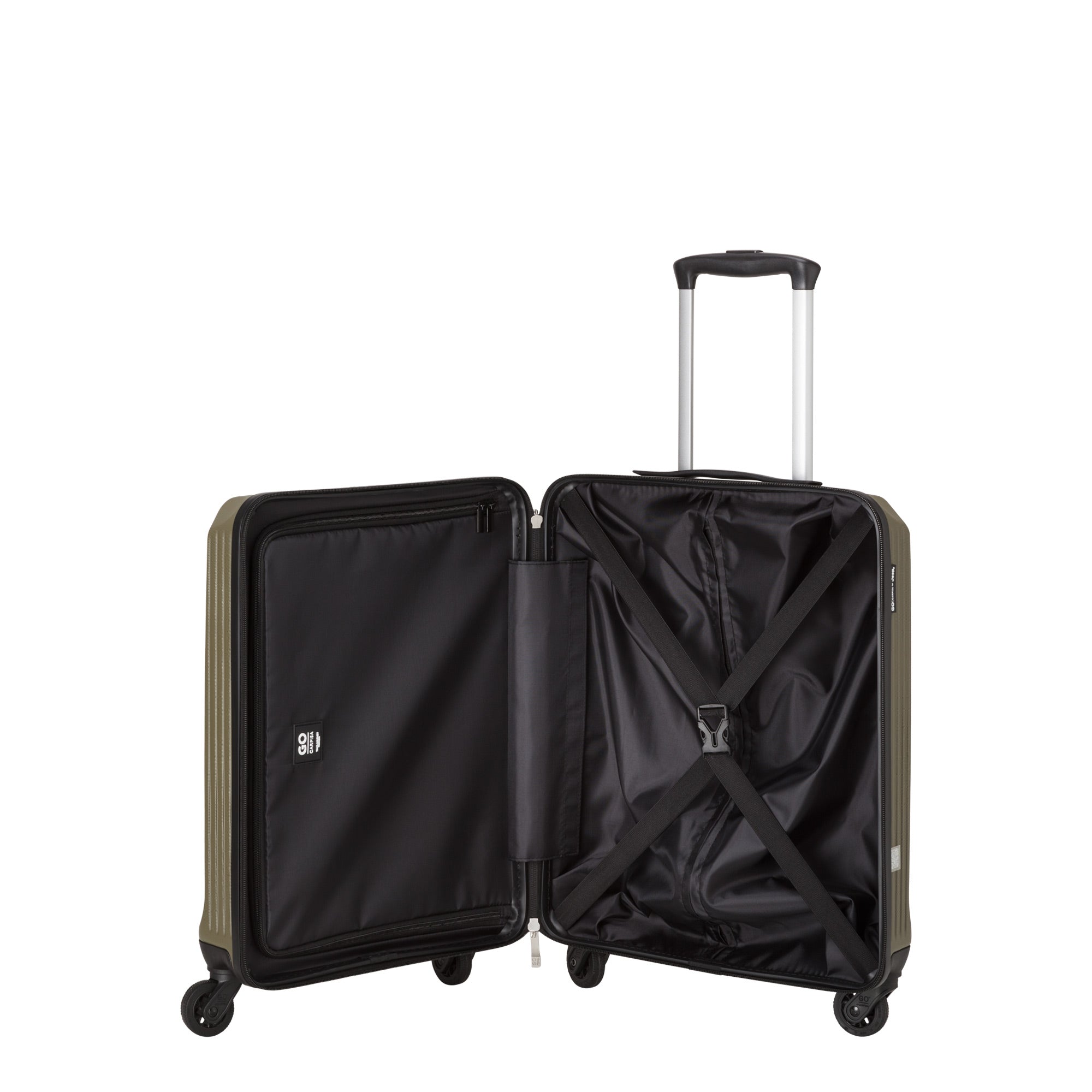 Valise cabine rigide de petite taille de la gamme Metropolis Jeep de Carpisa, fabriquée en ABS et polycarbonate avec une finition anti-rayures et un logo Jeep en relief. Ce modèle est équipé de roulettes simples, de poches intérieures, de sangles pour vêtements et de tirettes de fermeture éclair avec trous pour cadenas.