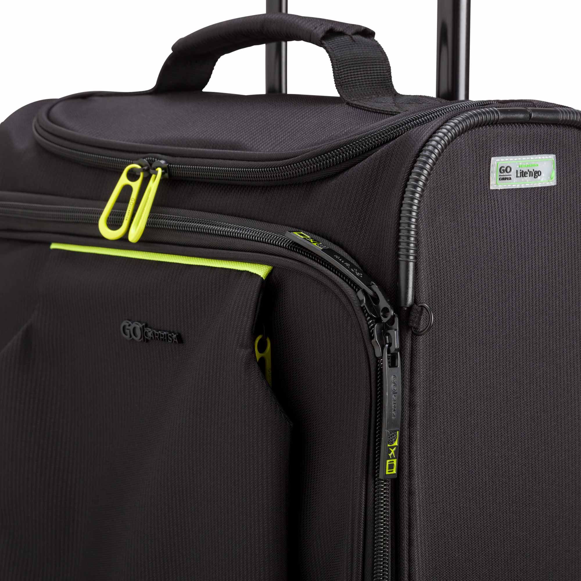 Fermeture éclair à double curseur et anneaux de sécurité permettant de fermer le trolley avec un cadenas.