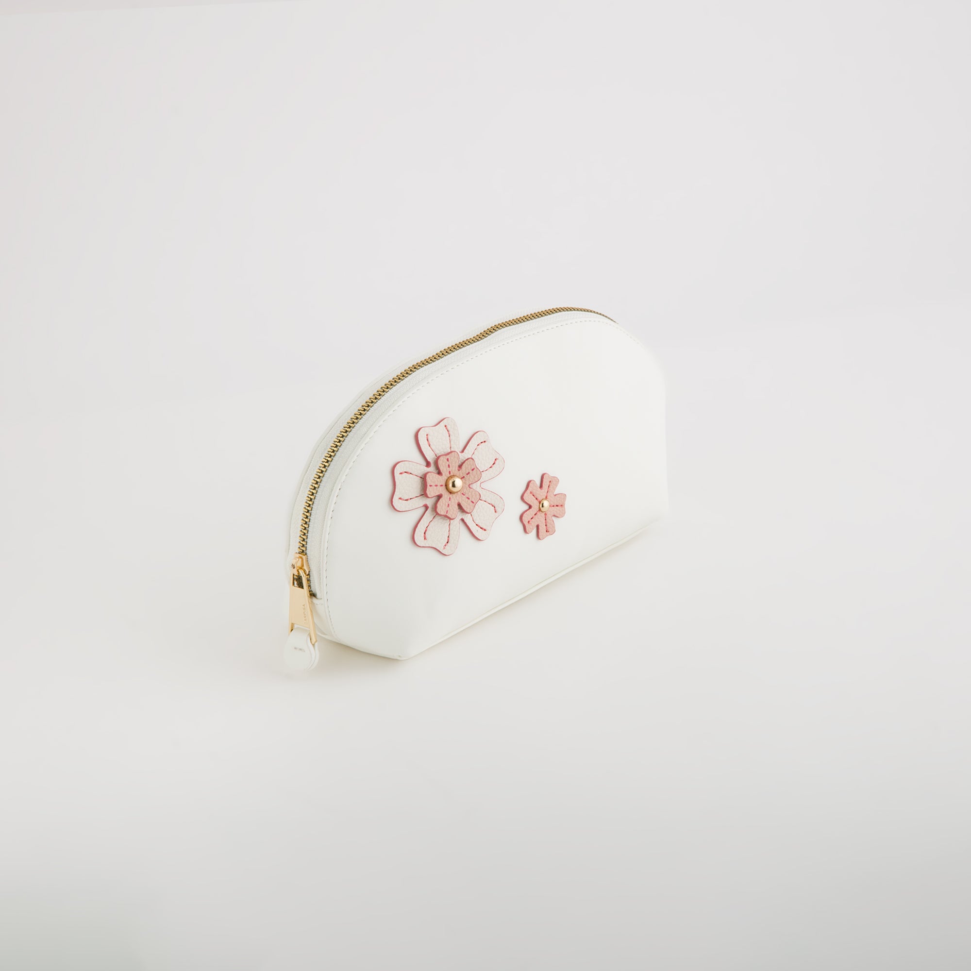 Étui de la ligne de portefeuilles Ortensia de Carpisa en PU lisse avec application de fleurs dans des tons de couleur.