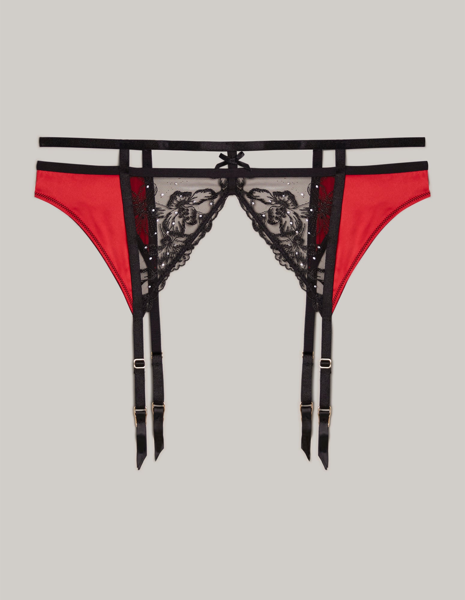 Illuminez votre look de sensualité avec la nouvelle ligne Lucent. Un look responsable grâce à une collection de sous-vêtements et de lingerie en satin, tulle et broderies, confectionnés à partir de fibres recyclées. Les couleurs intemporelles de l’hiver et des fêtes sont sublimées par des strass éclatants qui apportent une touche précieuse. Le porte-jarretelles, taille unique et réglable, est l’accessoire parfait pour ajouter une touche sexy à vos sous-vêtements.