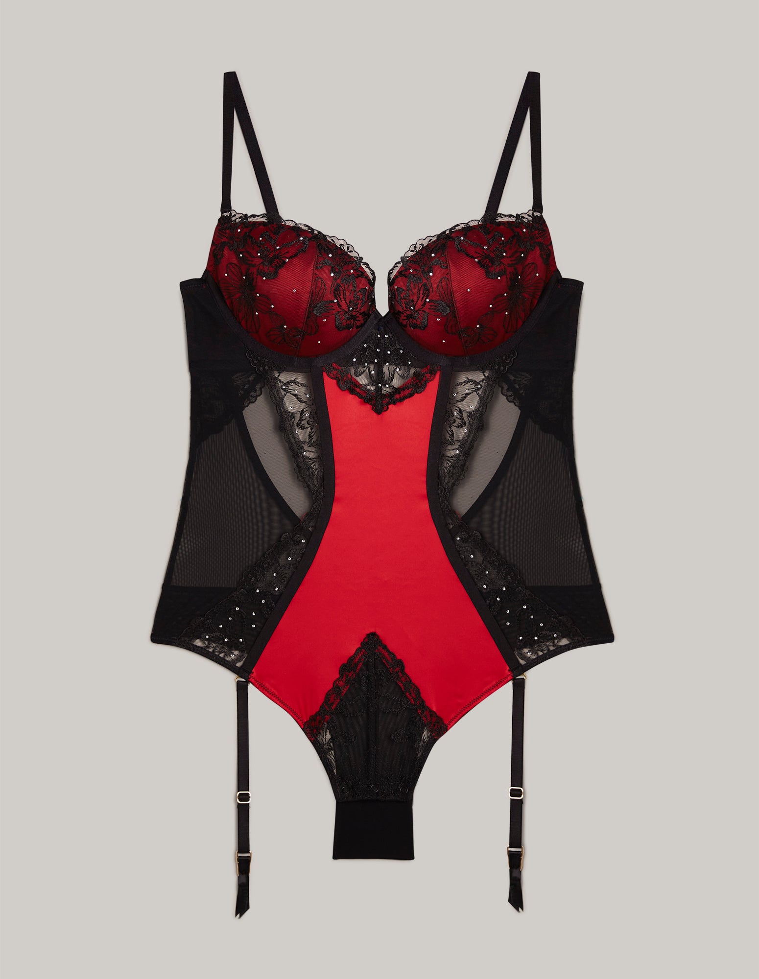 Illuminez votre look de sensualité avec la nouvelle ligne Lucent. Un look responsable grâce à une collection de sous-vêtements et de lingerie en satin, tulle et broderies, confectionnés à partir de fibres recyclées. Les couleurs intemporelles de l’hiver et des fêtes sont rehaussées d’empiècements en strass brillants qui apportent une touche précieuse. Le body, avec ses bonnets préformés et ses armatures, est une pièce ultra-sexy, agrémentée d’un porte-jarretelles amovible, pour un look élégant ou sensuel, selon l’usage. Idéal également comme sous-vêtement.