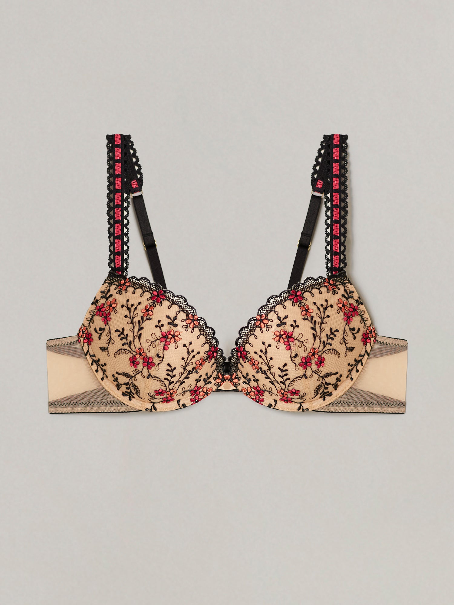 L’élégance sensuelle de la collection de sous-vêtements pour femmes Adhara de Yamamay est à ne pas manquer. Réalisée en tulle brodé effet nude, elle est rehaussée de fleurs fuchsia et orange, pour un look romantique et un effet tatouage. Le passe-ruban complète le design et lui confère une touche de séduction. Coupe classique pour ce soutien-gorge push-up à armatures, sublimé par la broderie sur le bord des bonnets et par des bretelles originales et tendance. À associer à la culotte Adhara pour une tenue très élégante. Le mannequin mesure 1,74 m, a un tour de poitrine de 85, un tour de taille de 62 et porte une taille 2. Ce produit est fabriqué en Chine.