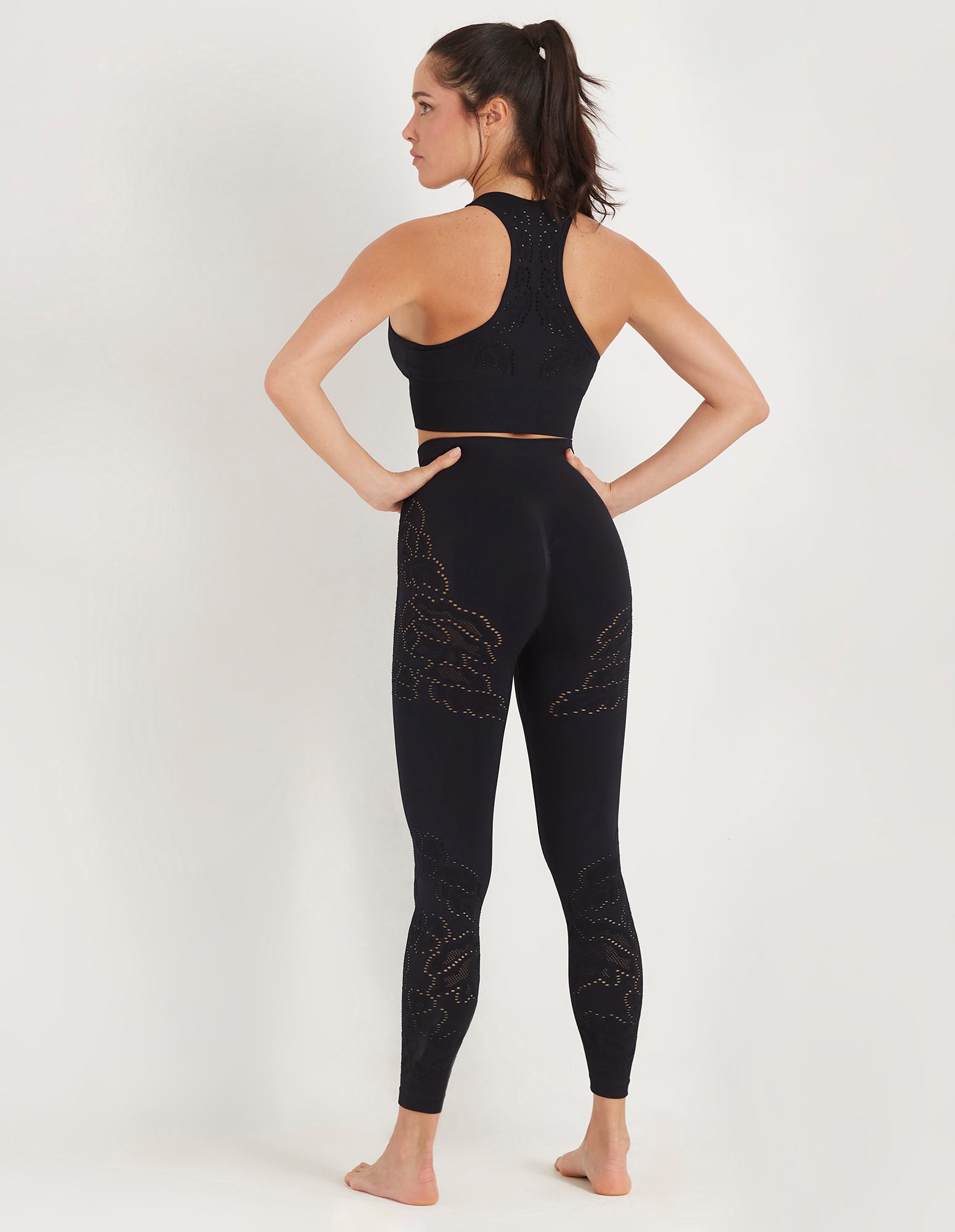 Une ligne ultra tendance, parfaite pour le sport, la salle de sport et les loisirs. Le legging Seamless / Yoga II sera le meilleur allié de vos moments de détente pendant les mois les plus chauds. Fabriqué en fibres de polyamide recyclées pour un look responsable, il bénéficie de la technologie sans coutures pour un confort absolu. Des couleurs tendance de saison, avec un motif floral ajouré, apportent une touche de sensualité. Ce legging présente des bandes stratégiques et une boucle centrale entre les fesses pour sublimer les courbes.
