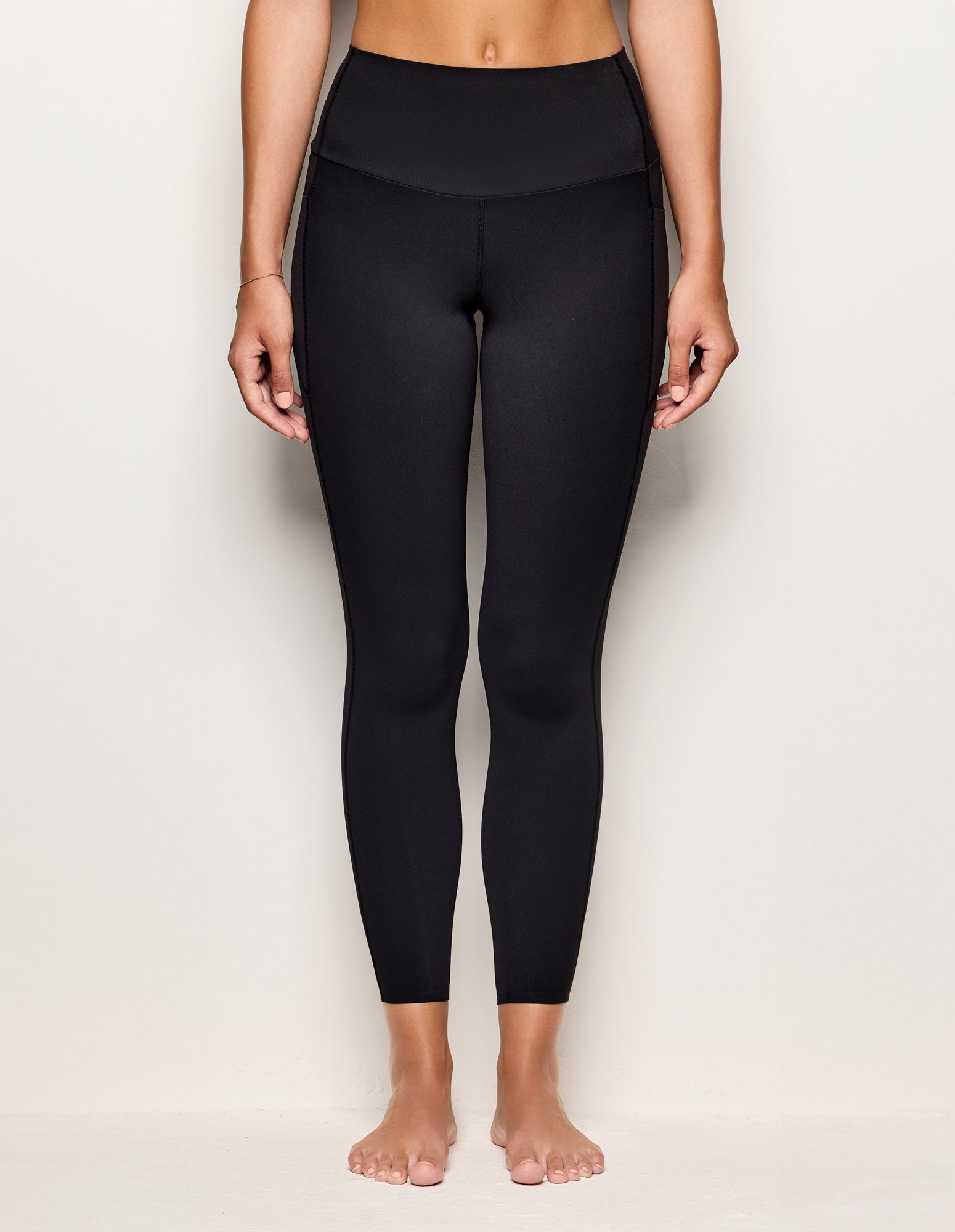 Legging long en tissu interlock, avec taille haute et poche latérale pratique. Disponible en deux coloris.