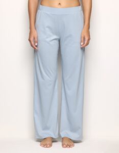 Pantalon long bleu clair pour femme, modèle Dream, 100 % coton, fruit de la collaboration entre Rinaldi et Yamamay : un équilibre parfait entre confort, qualité italienne et souci du détail. Tissu doux et respirant qui enveloppe le corps, idéal pour transformer chaque instant de repos en un véritable rituel bien-être. Design fonctionnel et élégant pour une détente optimale, car le véritable confort commence par nos choix.