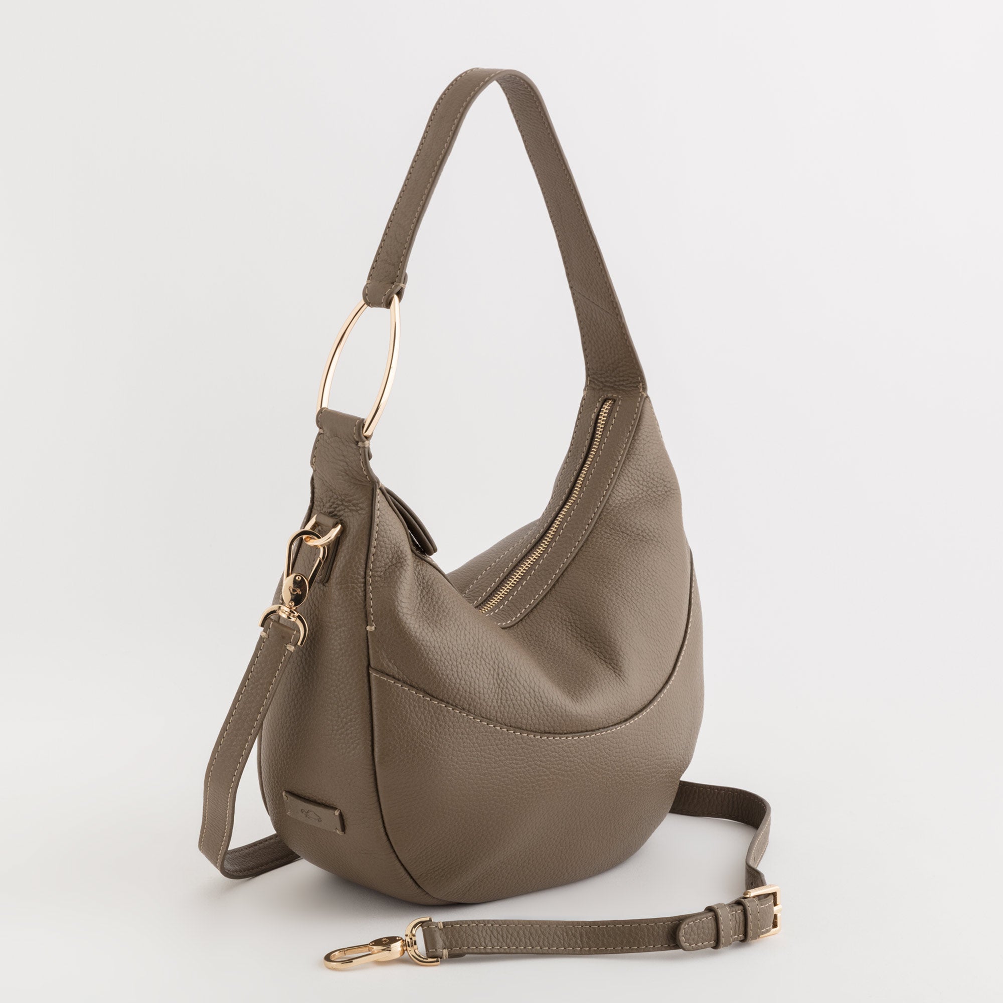 Avec sa forme arrondie et son élégant anneau métallique, c’est un accessoire polyvalent, parfait en toute occasion.