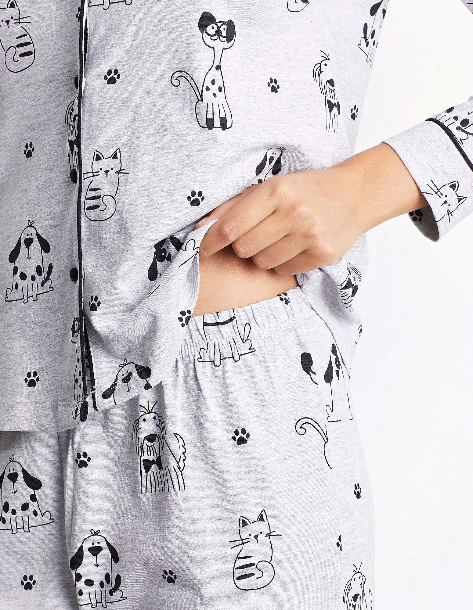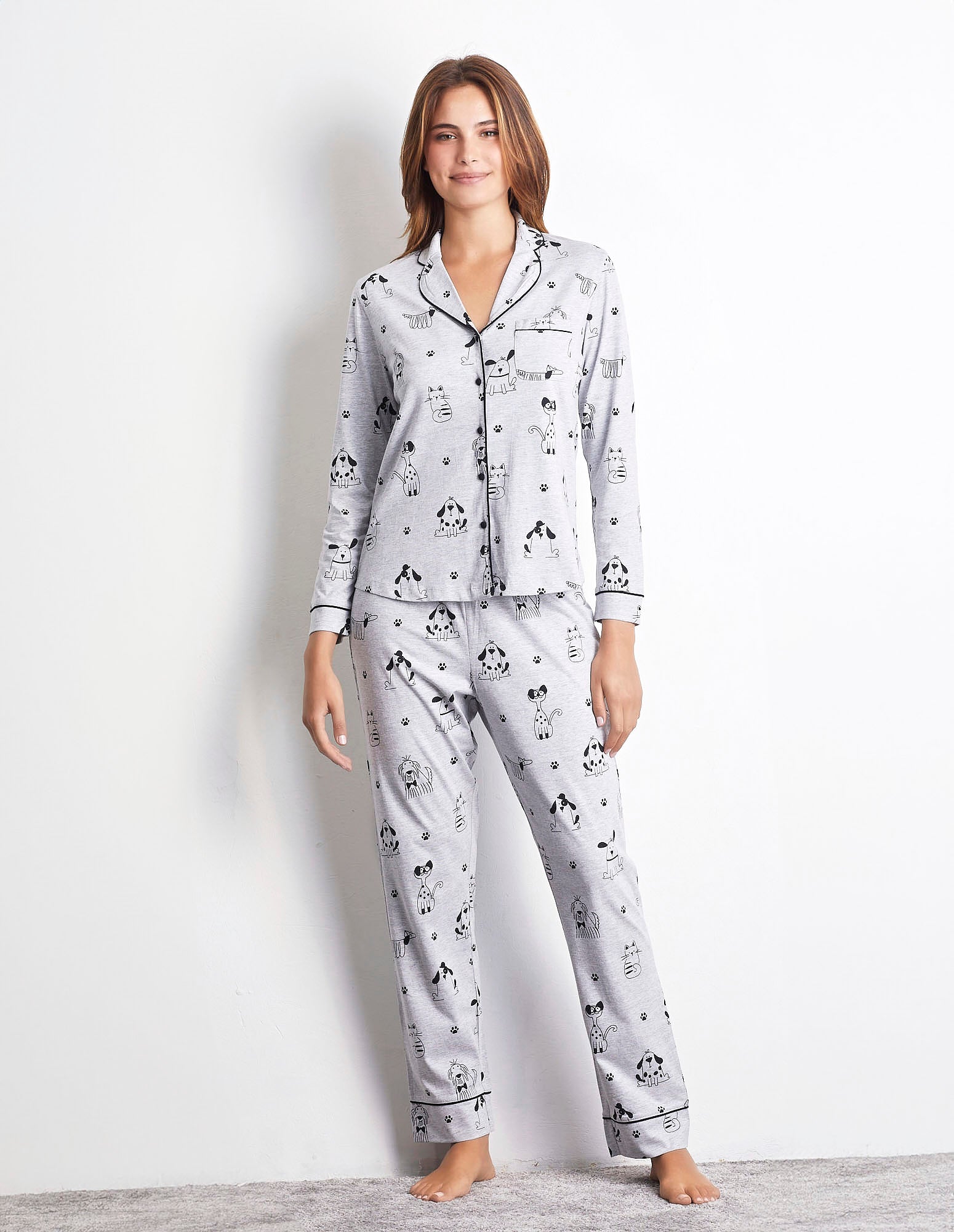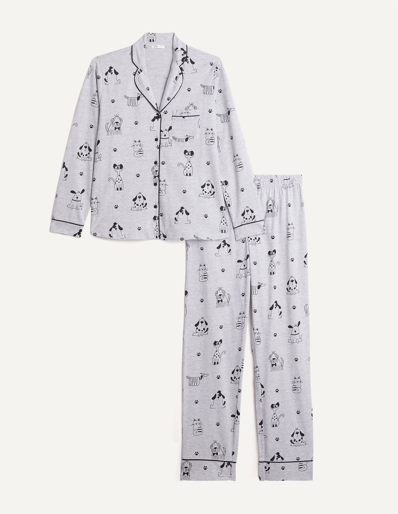 Créez des souvenirs inoubliables et profitez d’une détente absolue avec les vêtements de la ligne Best Friends ! Une sélection de pyjamas et d’accessoires parfaits pour cet automne, confortables, chauds et ultra-tendance. Ce pyjama en jersey doux allie raffinement, élégance et polyvalence. Sa chemise boutonnée et son pantalon à la coupe fluide vous permettront de vous sentir libre et fraîche toute la nuit. Son doux imprimé de chiens et de chats, les meilleurs amis les plus sincères qui soient, le rend ultra-polyvalent et tendance.