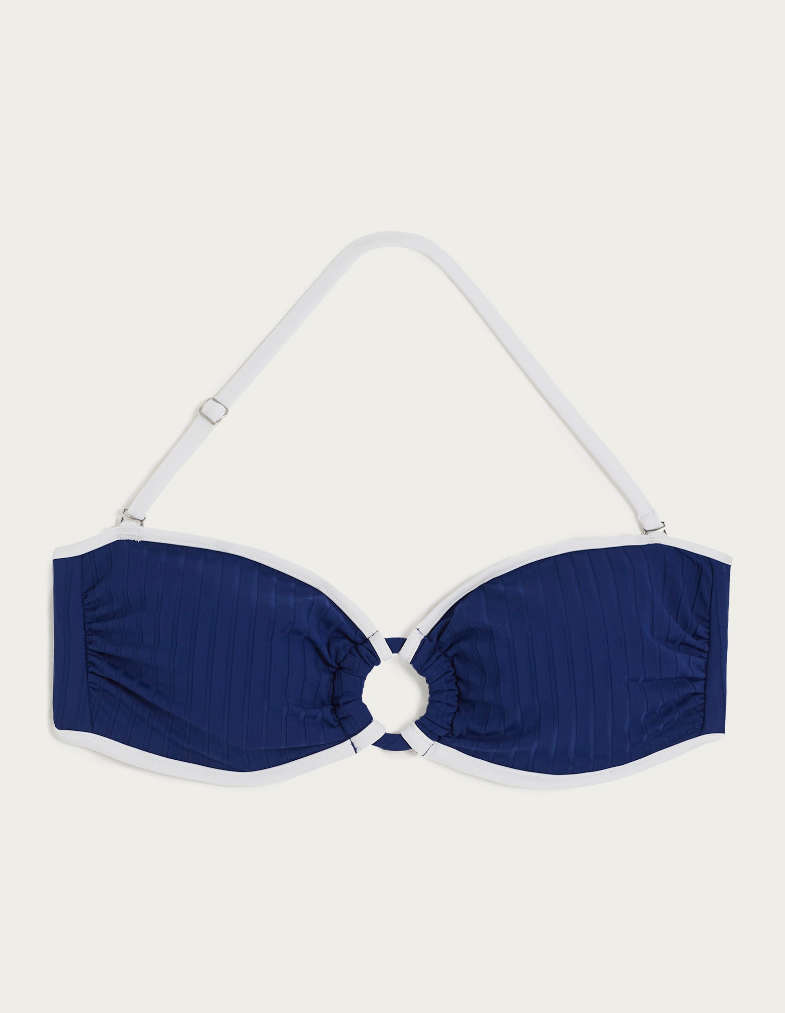 Une collection unique, au style sophistiqué et rétro, la ligne Anita est le choix idéal pour affronter l’été ! Sa variante bleu marine et ses détails blancs apportent contraste et profondeur à votre silhouette. Tous les maillots de bain sont confectionnés en charmeuse côtelée douce, idéale pour créer du mouvement et offrir un confort optimal. Ce bandeau apportera à vos tenues un style minimaliste et ultra glamour. Il est doté de bonnets préformés amovibles, d’un anneau central et de bretelles réglables. Associez-le au slip brésilien de la collection pour un look époustouflant !