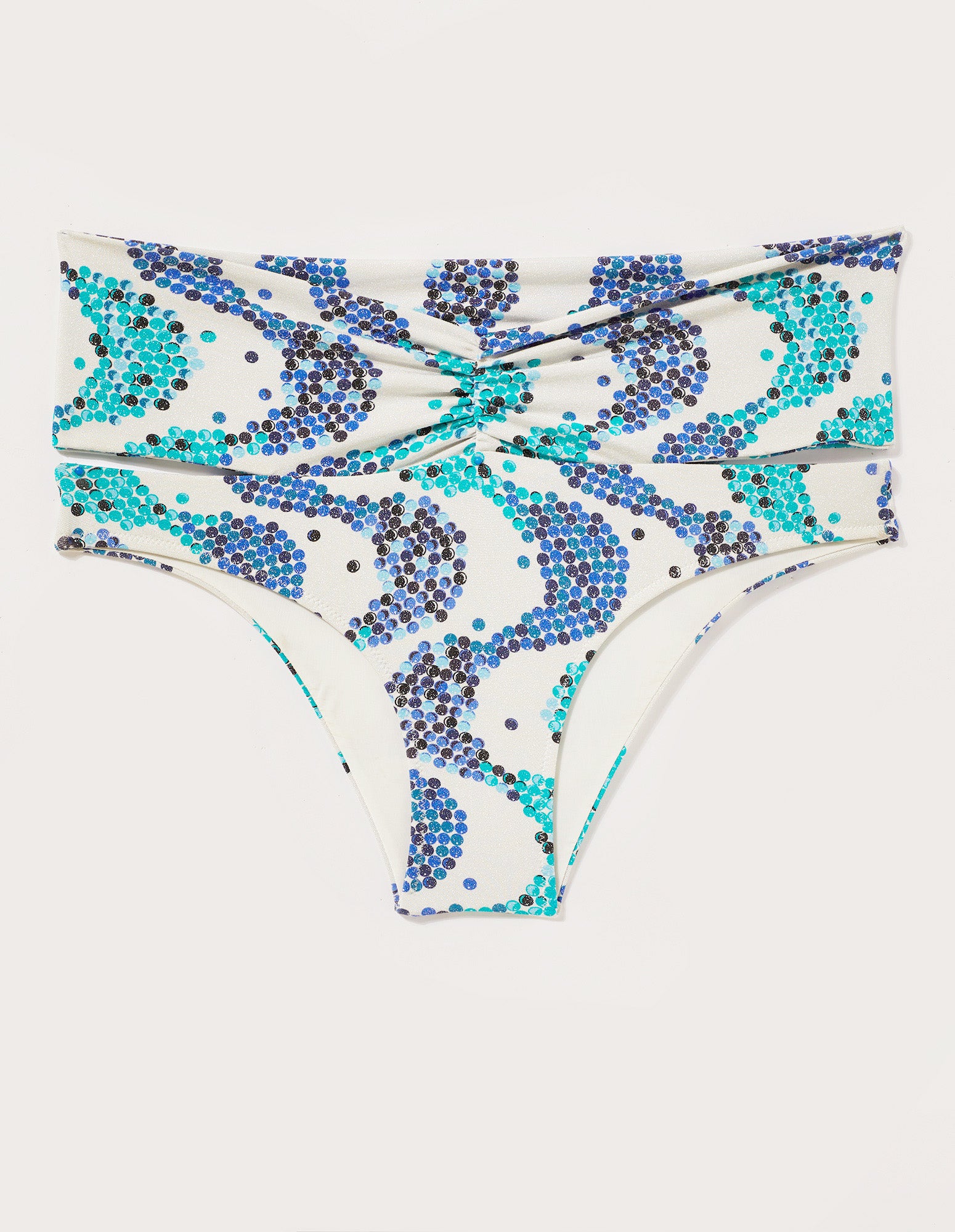 Pour un été inoubliable, découvrez la nouvelle collection Rio to Milan. Fruit de la collaboration avec le créateur brésilien Amir Slama, cette ligne propose une sélection exclusive de vêtements et de maillots de bain. Inspirée des vagues majestueuses de Copacabana à Rio de Janeiro, la collection capture l’essence vibrante et colorée du Brésil, tandis que les couleurs évoquent la chaleureuse atmosphère méditerranéenne. Confectionné en lurex et rehaussé de détails brodés, chaque vêtement incarne l’essence brésilienne authentique. Ce bas taille haute, avec ses découpes latérales et sa boucle centrale, affine parfaitement votre silhouette. Un look moderne et distinctif, idéal pour la plage et la piscine.