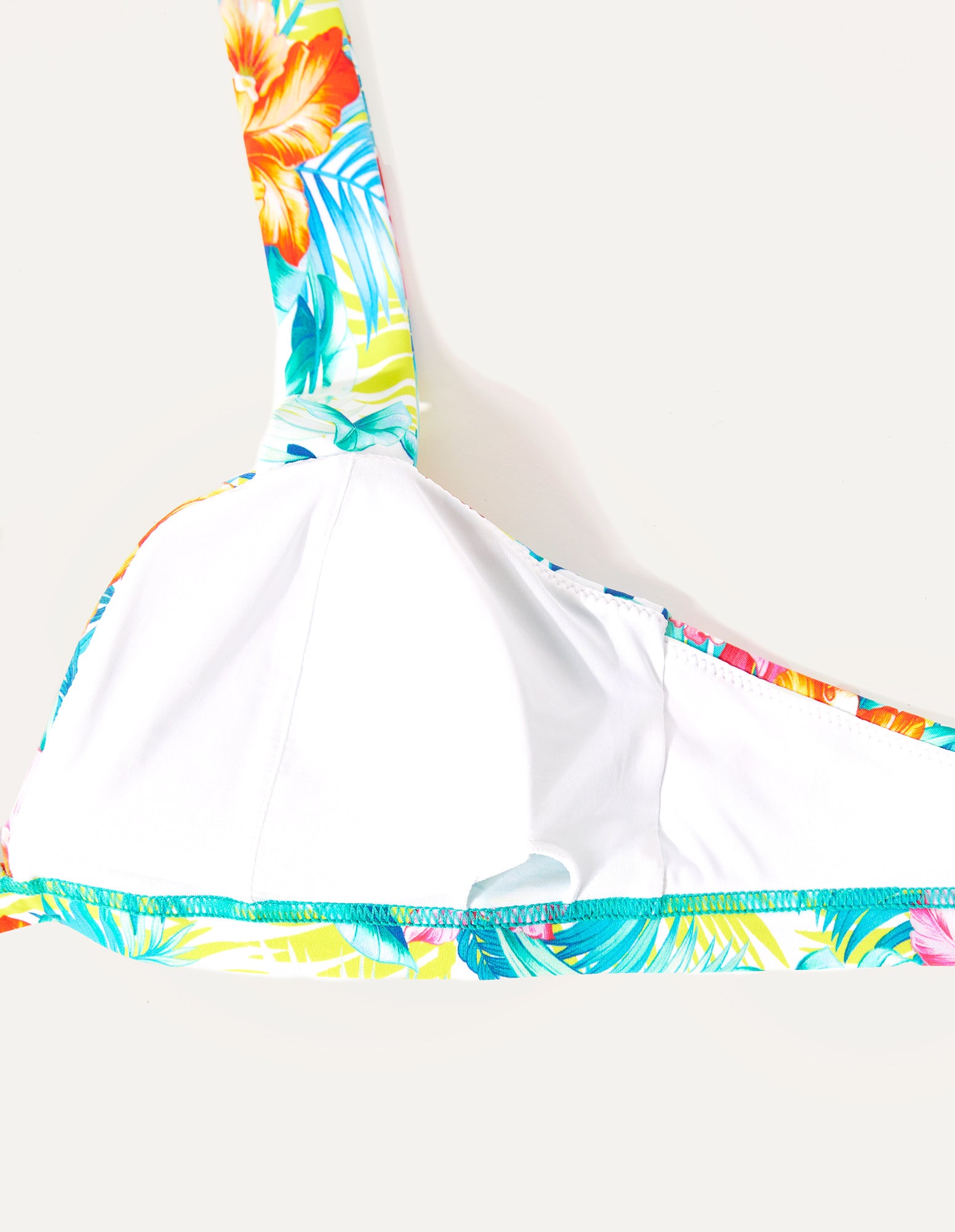 Ne manquez pas la nouvelle ligne de vêtements et de maillots de bain Ingrid ! Conçue pour toute la famille, elle est sublimée par l’imprimé floral tropical signé Beppe Spadacini. Les maillots sont confectionnés en tissu Fishtale, composé de fibres recyclées de polyamide et d’élasthanne post-consommation issues de filets de pêche abandonnés au fond des mers. Fishtale garantit une excellente élasticité et respirabilité. Cette brassière à bonnets préformés offre un design innovant qui s’adapte parfaitement aux poitrines généreuses, assurant un maintien confortable et sûr. Son décolleté profond et ses bretelles réglables vous permettent de créer de nombreux looks.
