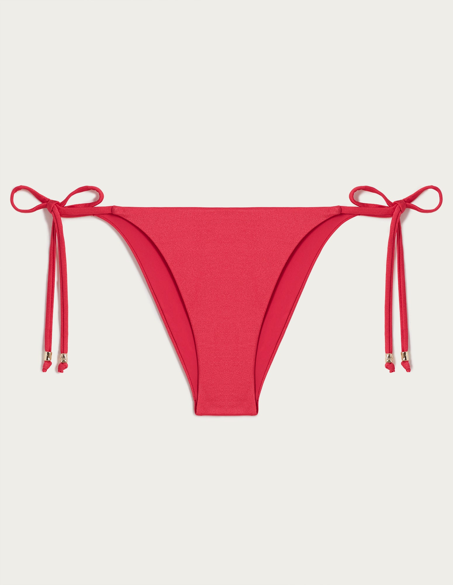 Avec la nouvelle collection Janis, découvrez des maillots de bain rouge cerise à la fois séduisants et sensuels. Coupes minimalistes, coupes ajustées, décolletés vertigineux, le tout sublimé par des anneaux dorés. Le tissu Shira Sirius, composé de fibres recyclées, se distingue par sa brillance, son excellente élasticité et son confort. Le bas de bikini présente une coupe très étroite, avec des lacets latéraux pour un ajustement parfait.