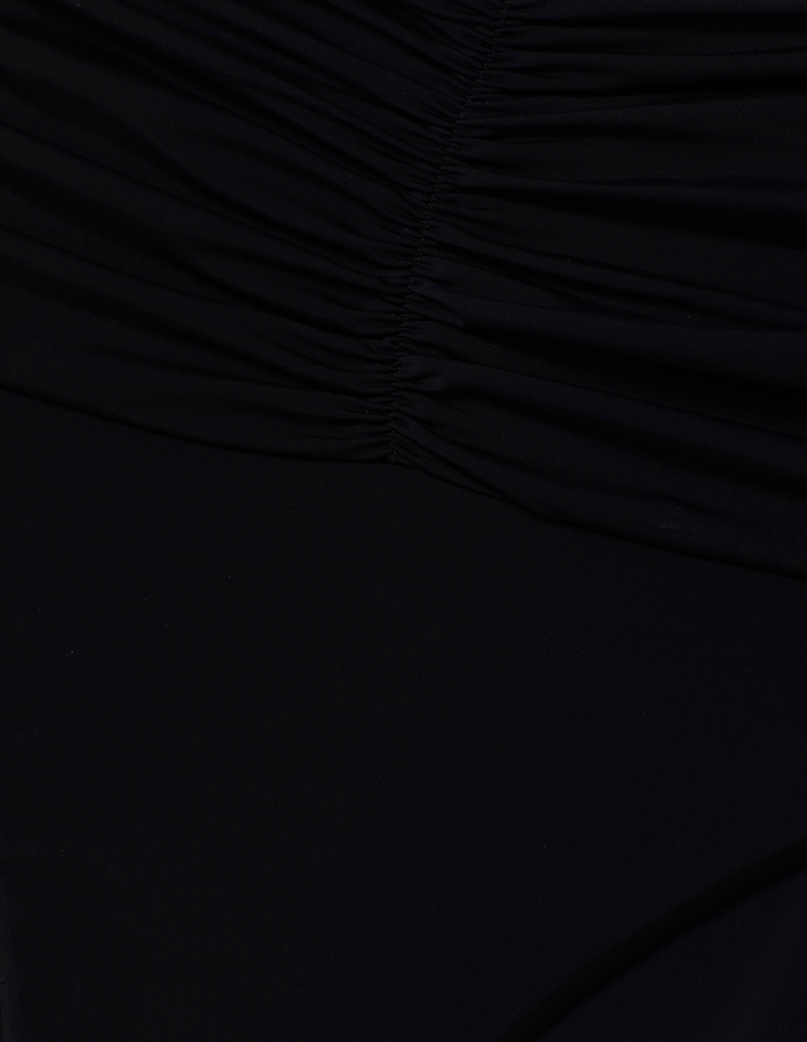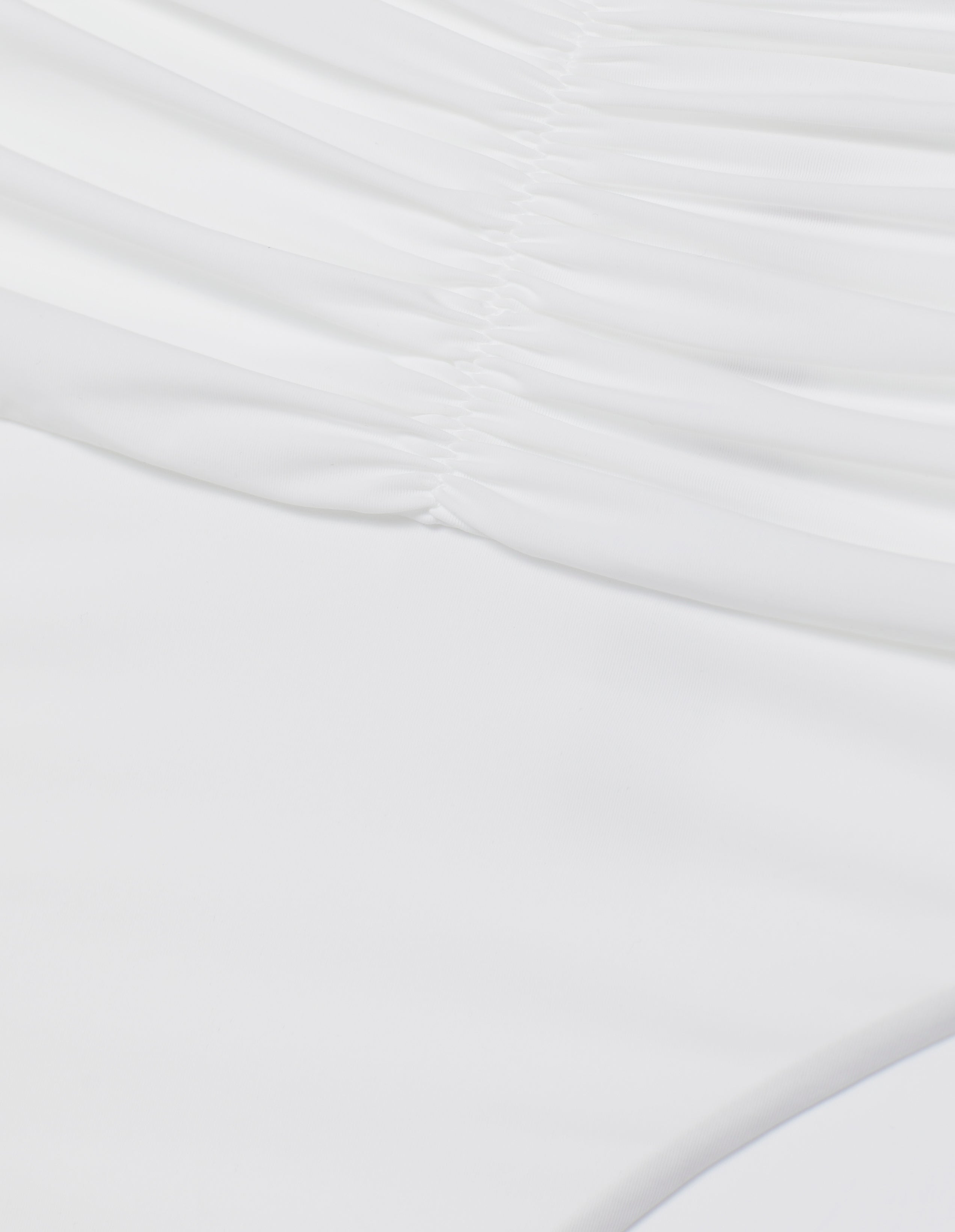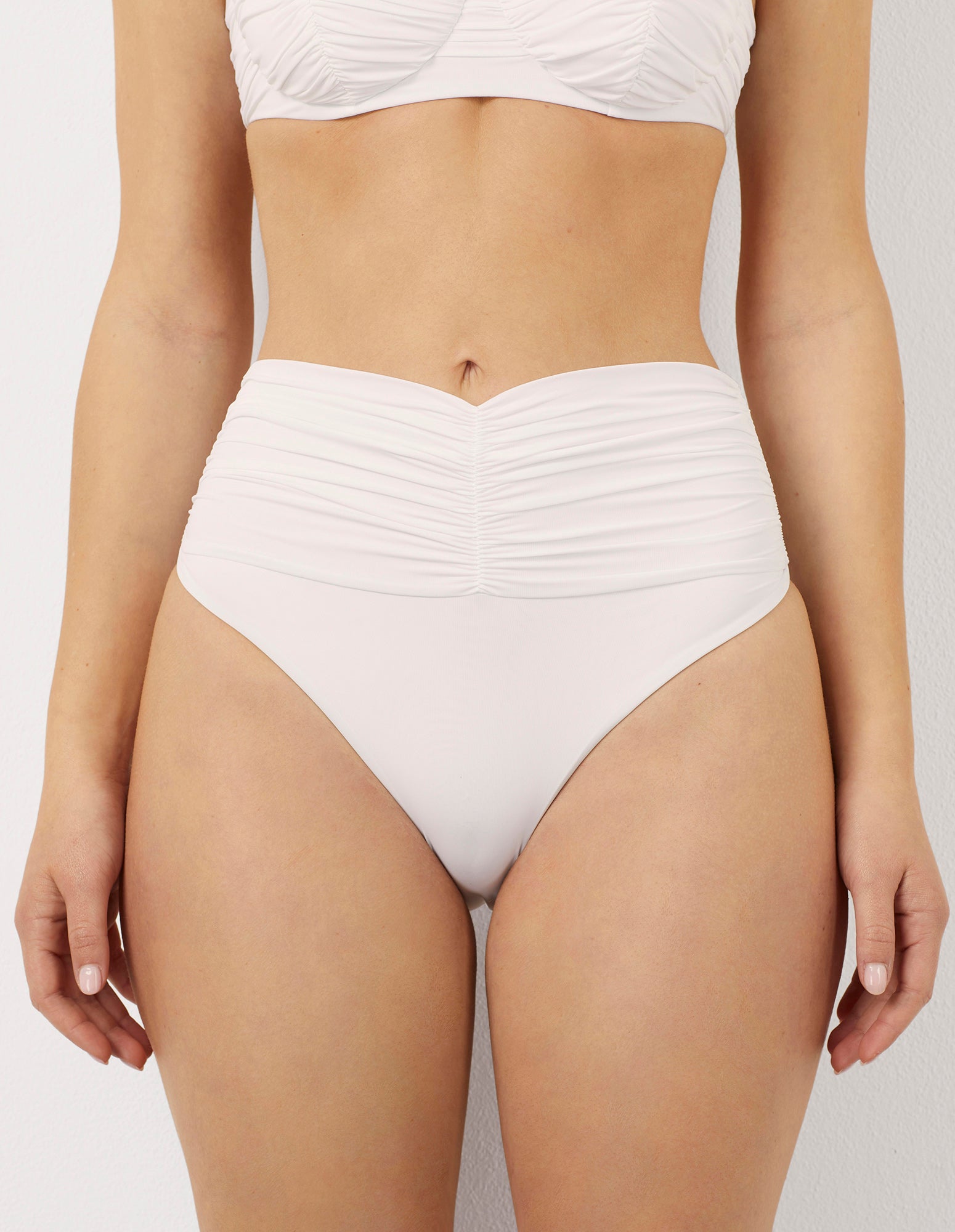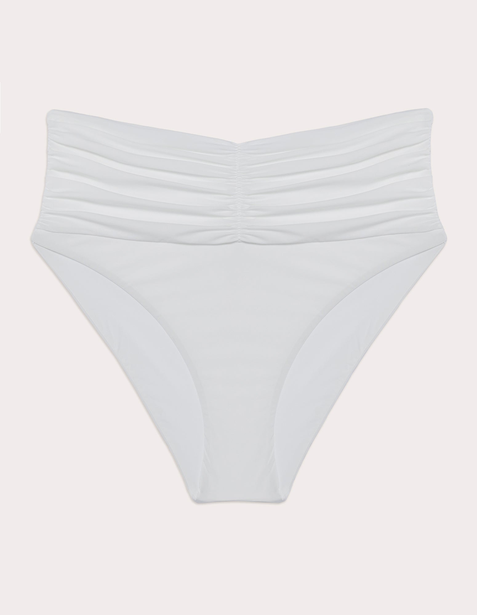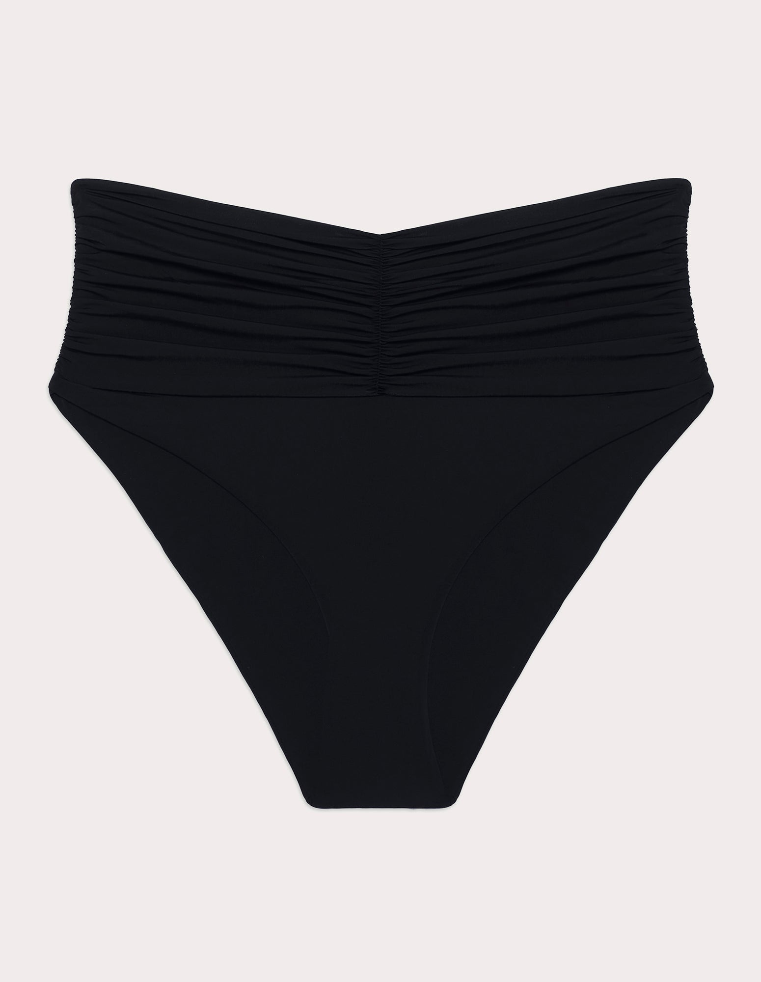 Culotte taille haute avec bande drapée en haut pour plus de mouvement et épouser la silhouette. Fabriquée en microfibre recyclée mate. Disponible en 3 coloris.