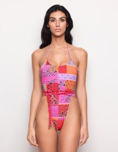 Avec la nouvelle collection Janis, découvrez des maillots de bain rouge cerise à la fois séduisants et sensuels. Coupes minimalistes, coupes ajustées, décolletés vertigineux, le tout sublimé par des anneaux dorés. Le tissu Shira Sirius, composé de fibres recyclées, se distingue par sa brillance, son excellente élasticité et son confort. Ce maillot de bain une pièce arbore un design original et séduisant, laissant entièrement les hanches et la taille découvertes, ainsi qu’un décolleté très profond. Il est également doté de bonnets préformés amovibles.