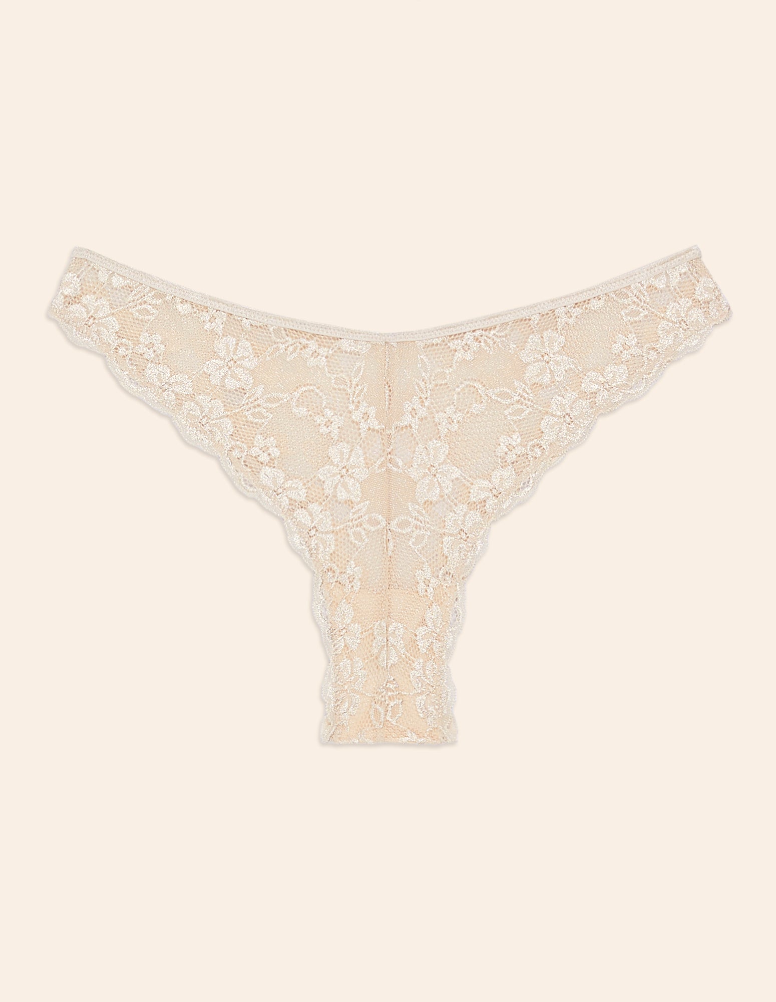 Culotte brésilienne crème Primula avec détails en dentelle et coupe douce et confortable.,DENTELLE LAMINÉE,90 % PA 10 % EA