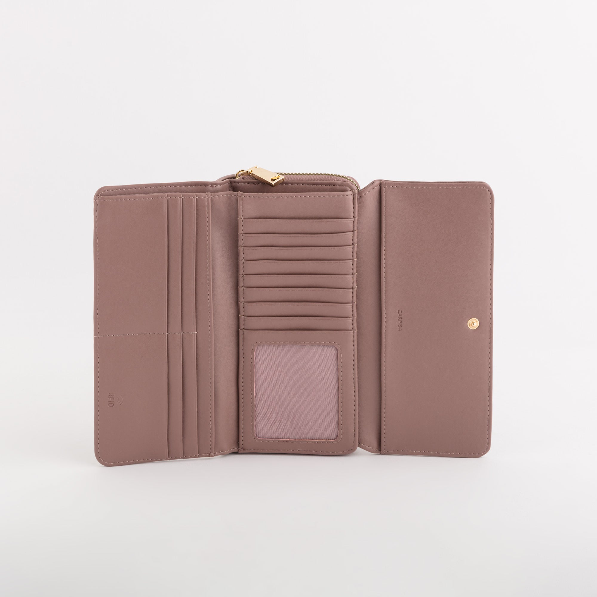 Grand portefeuille femme à rabat de la collection Loto V2 Winter Wallet de Carpisa, de couleur unie. Ce modèle rectangulaire comporte deux compartiments, dont un zippé. À l’intérieur, il comprend une poche à monnaie, quinze emplacements pour cartes, deux fentes pour documents et une poche pour billets. Un accessoire pratique et fonctionnel, idéal au quotidien.