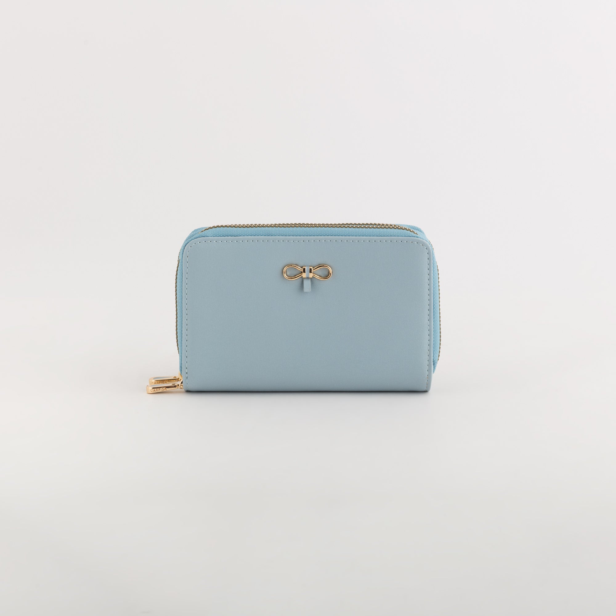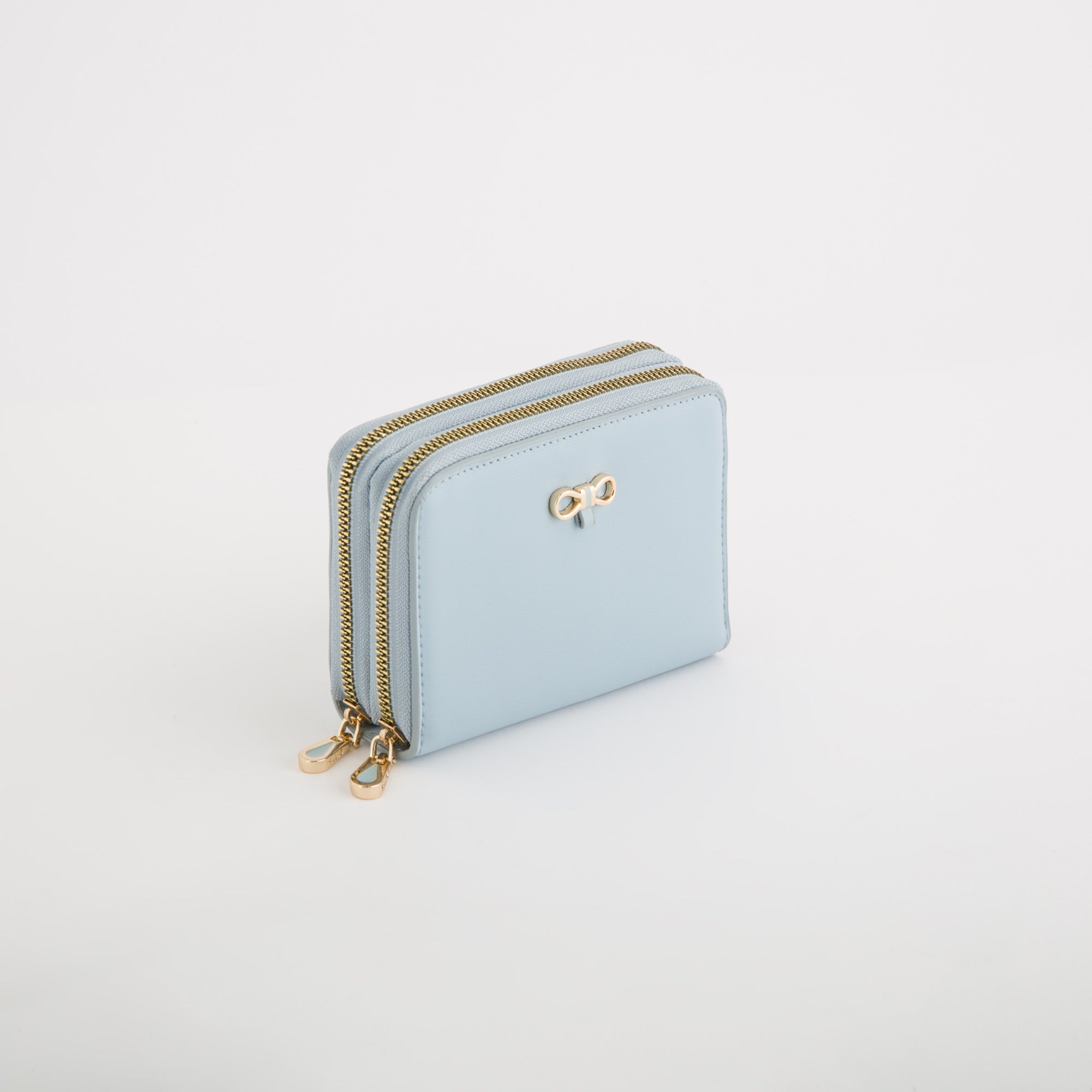 Grand portefeuille de la ligne Gelsomino Wallet V2 de Carpisa, en PU lisse, orné d’un accessoire métallique à motif nœud et dont la partie centrale est émaillée.