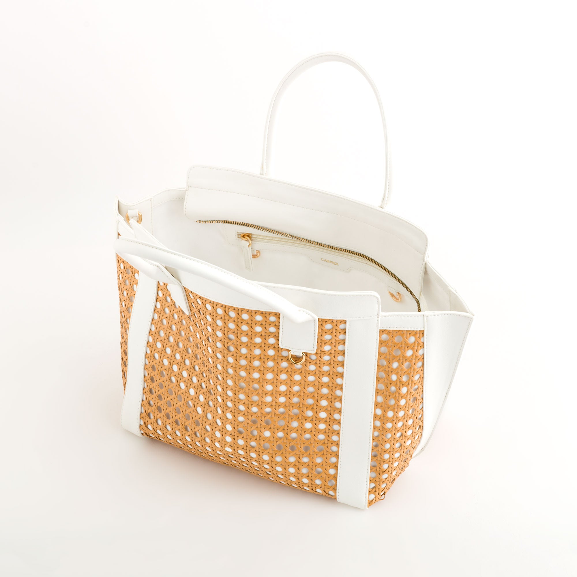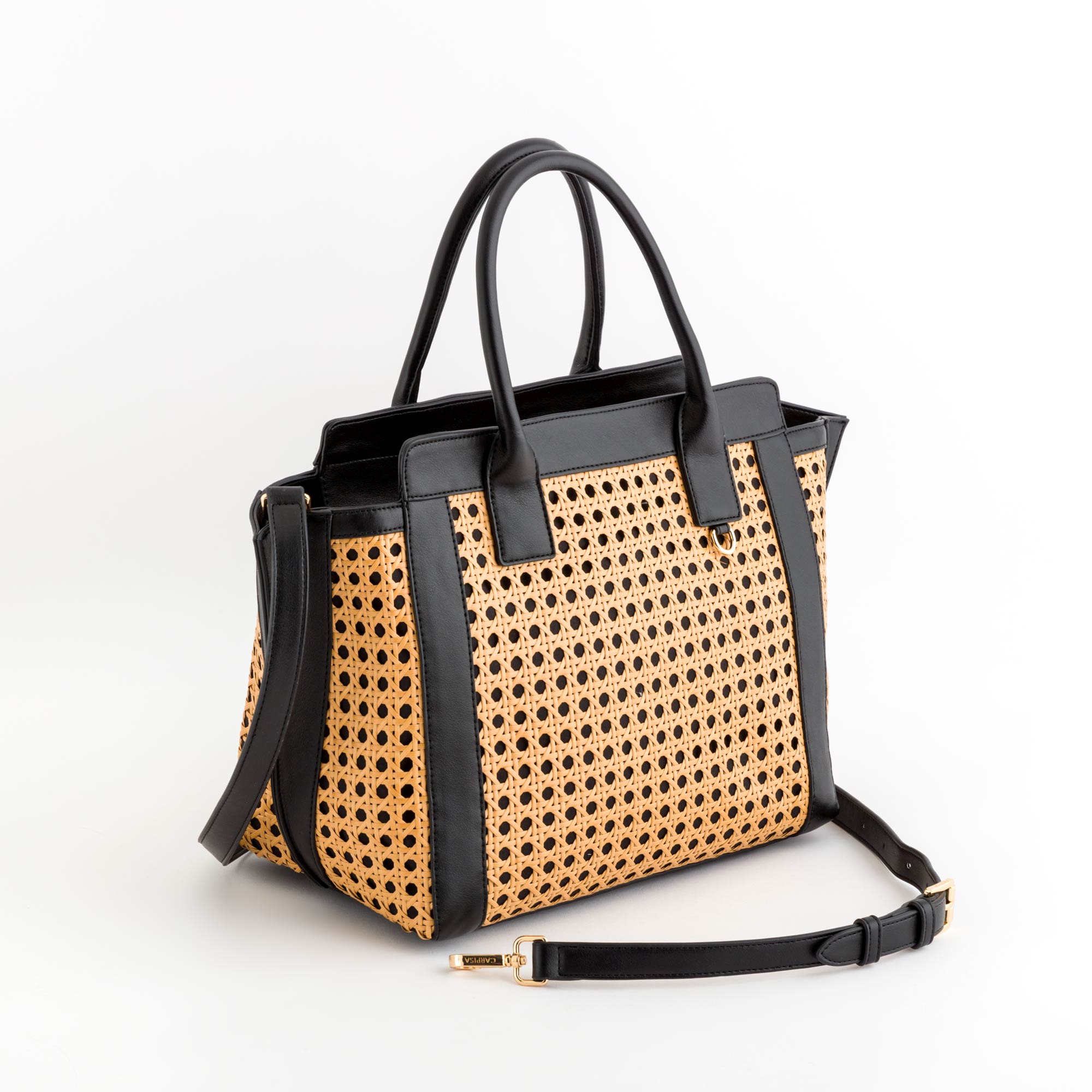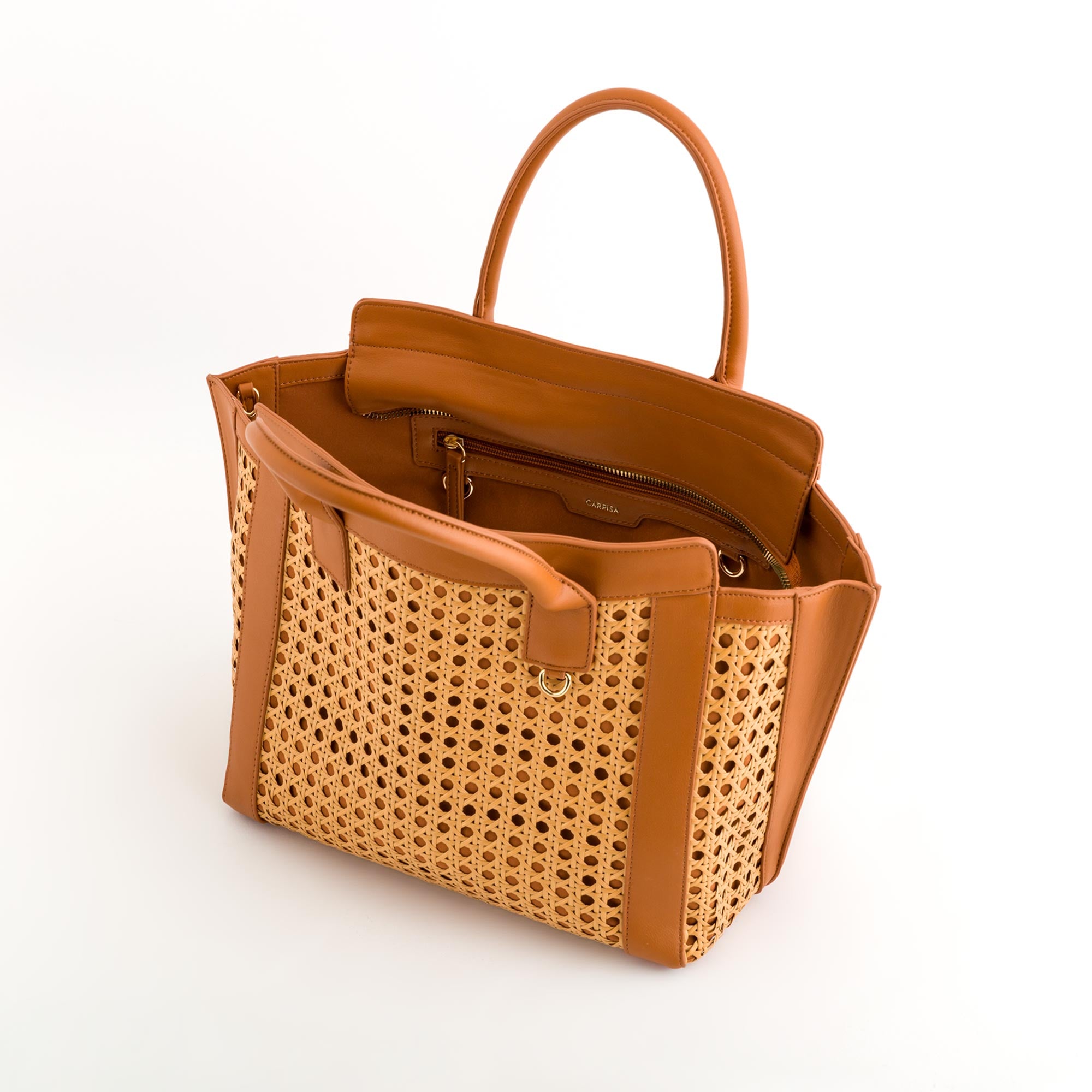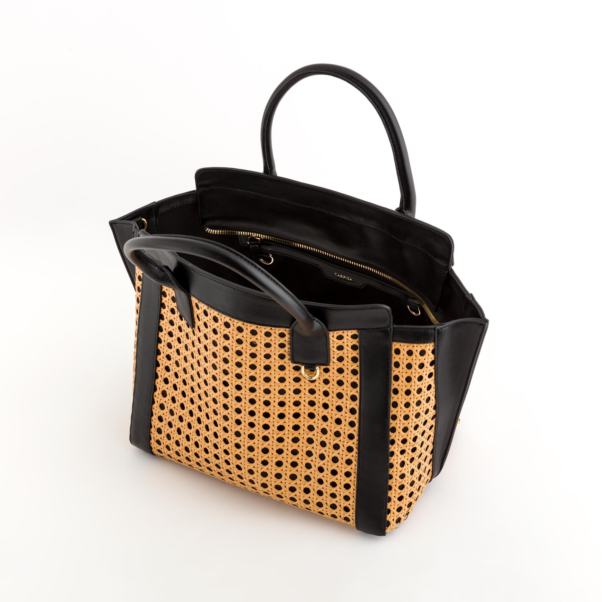 Sac à main Febe V1 de Carpisa, en paille de Vienne avec empiècements en similicuir.