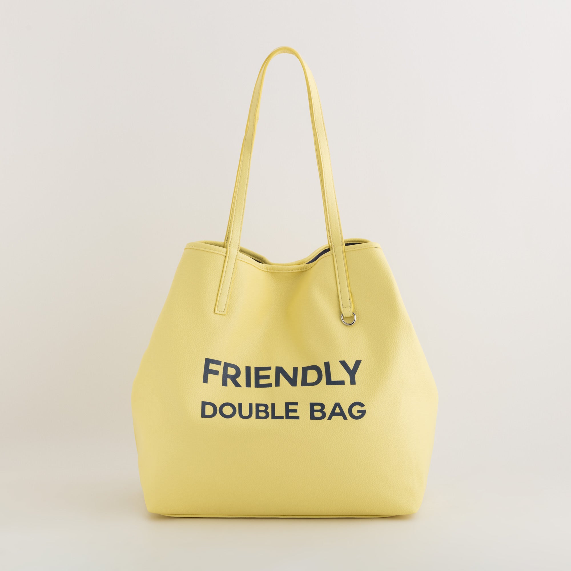 Shopping de la ligne Friendly Double Bag Spring V2 de Carpisa, une ligne réversible 2 en 1 en grain et nylon de haute qualité, matières qui reflètent la philosophie écologique de la marque.
