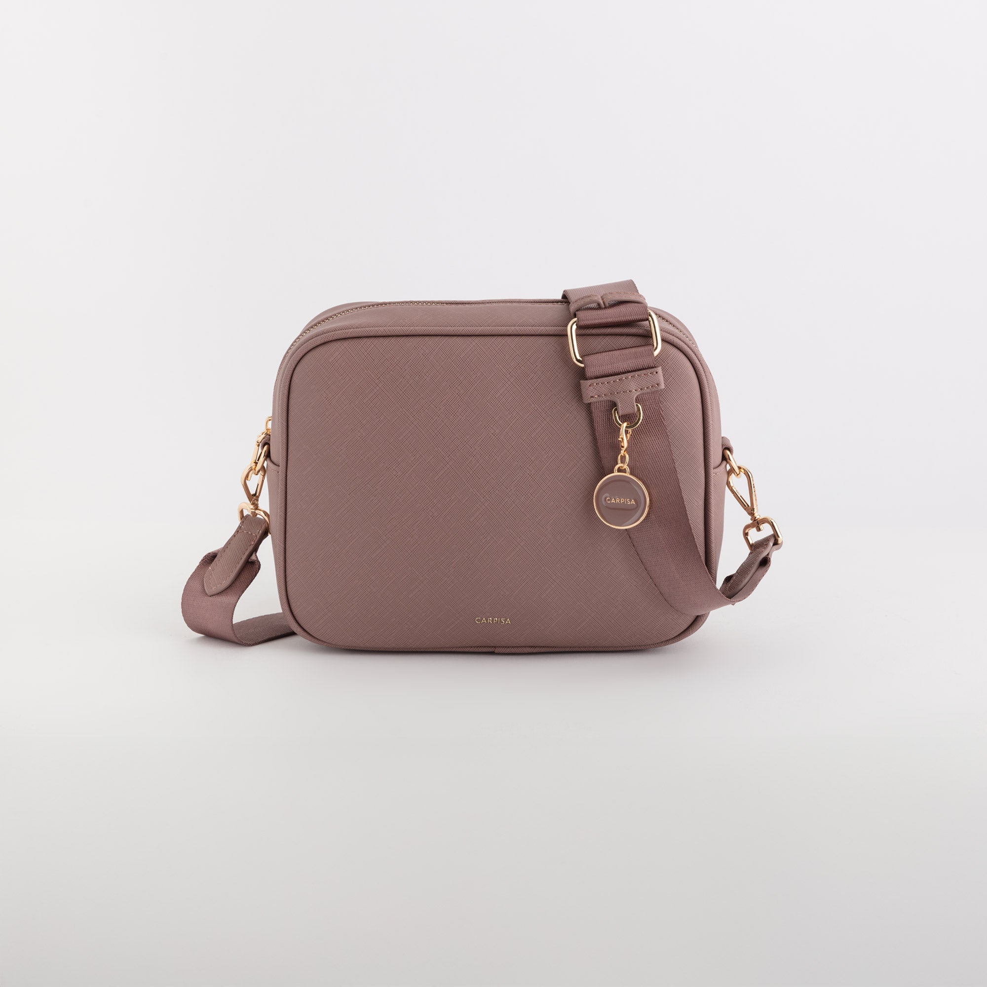 Sac bandoulière femme de la ligne Loto V2 Winter de Carpisa, effet saffiano et aux lignes simples et linéaires.