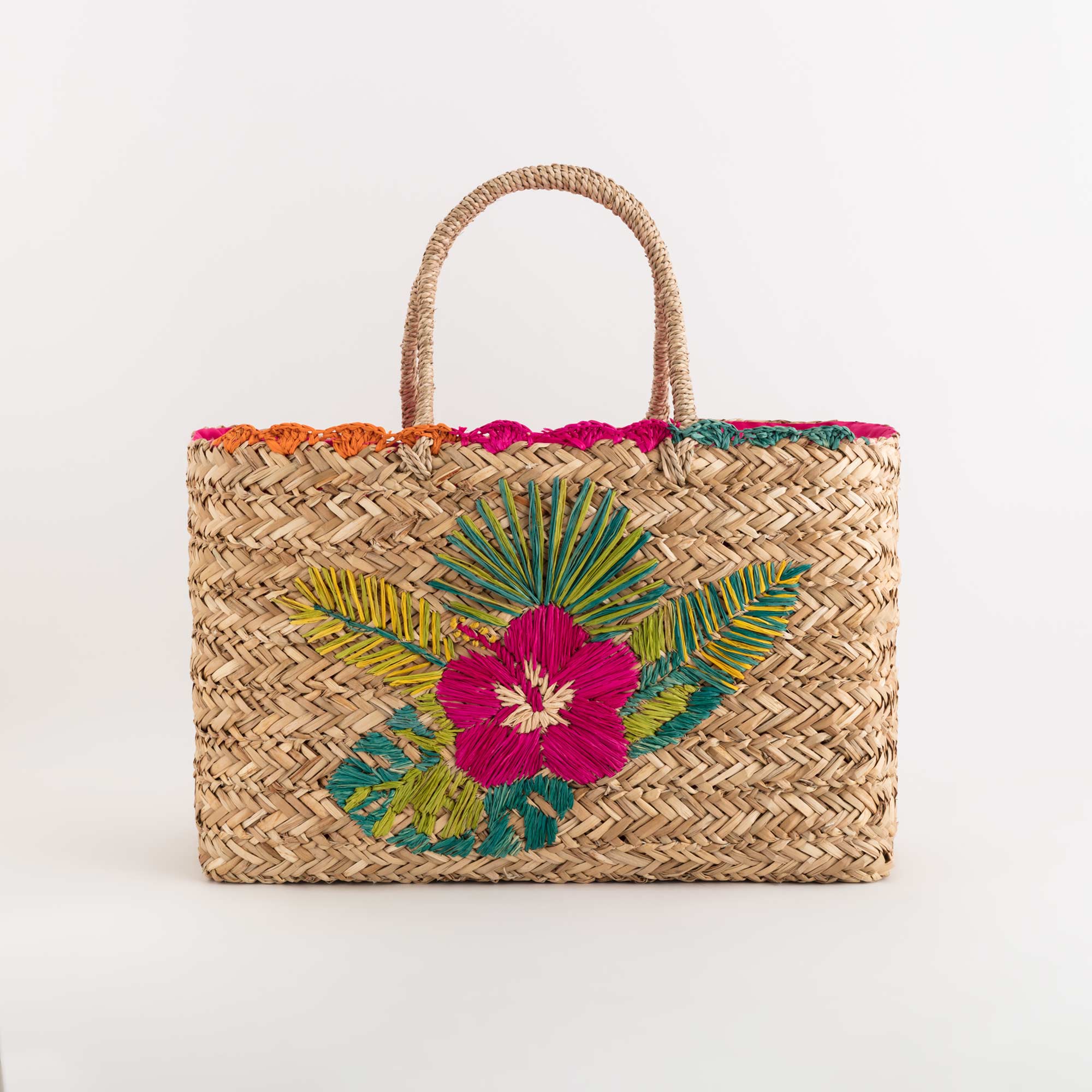 Grand panier de la collection Amorgos de Carpisa, confectionné en paille avec une broderie florale en raphia, un savoir-faire exquis. Il est doté d’une fermeture éclair, de poches intérieures et de poignées.
