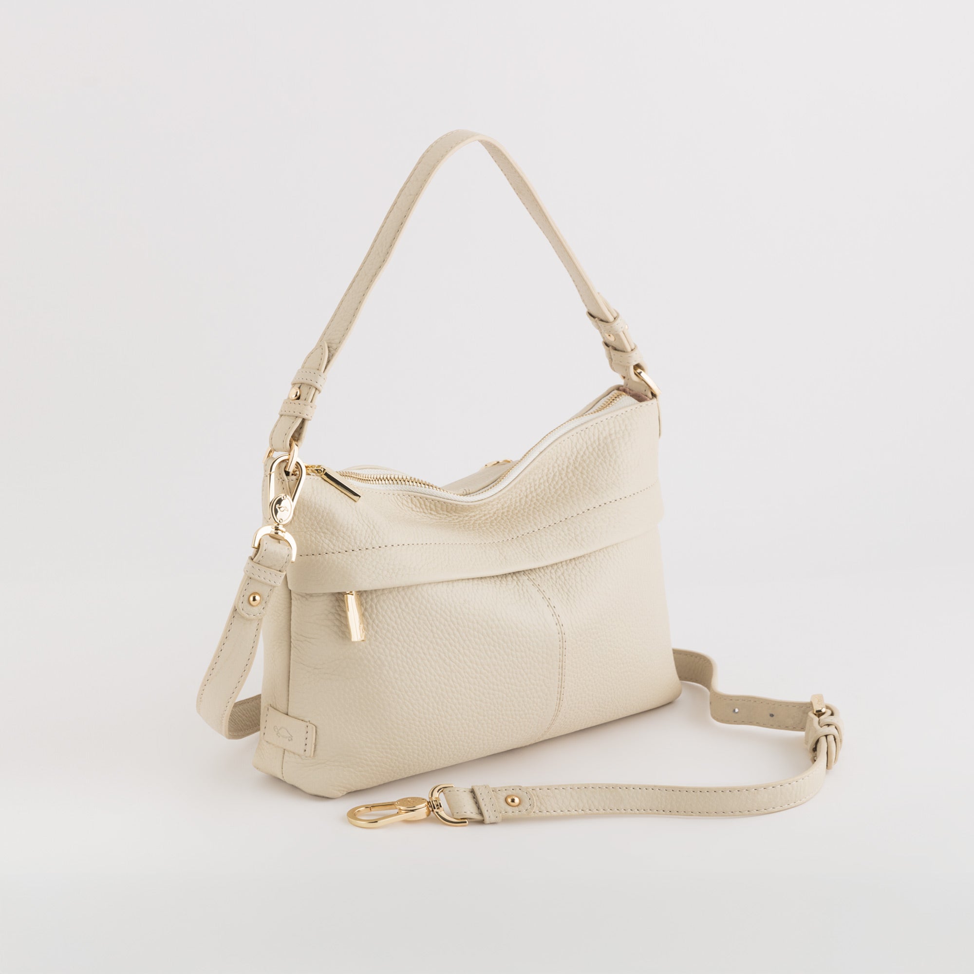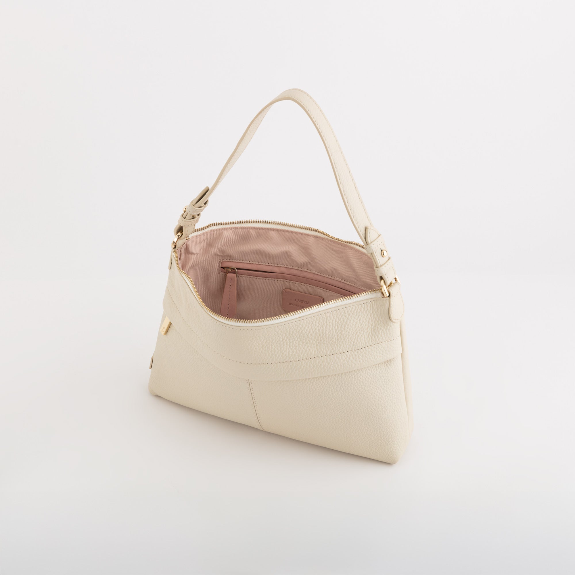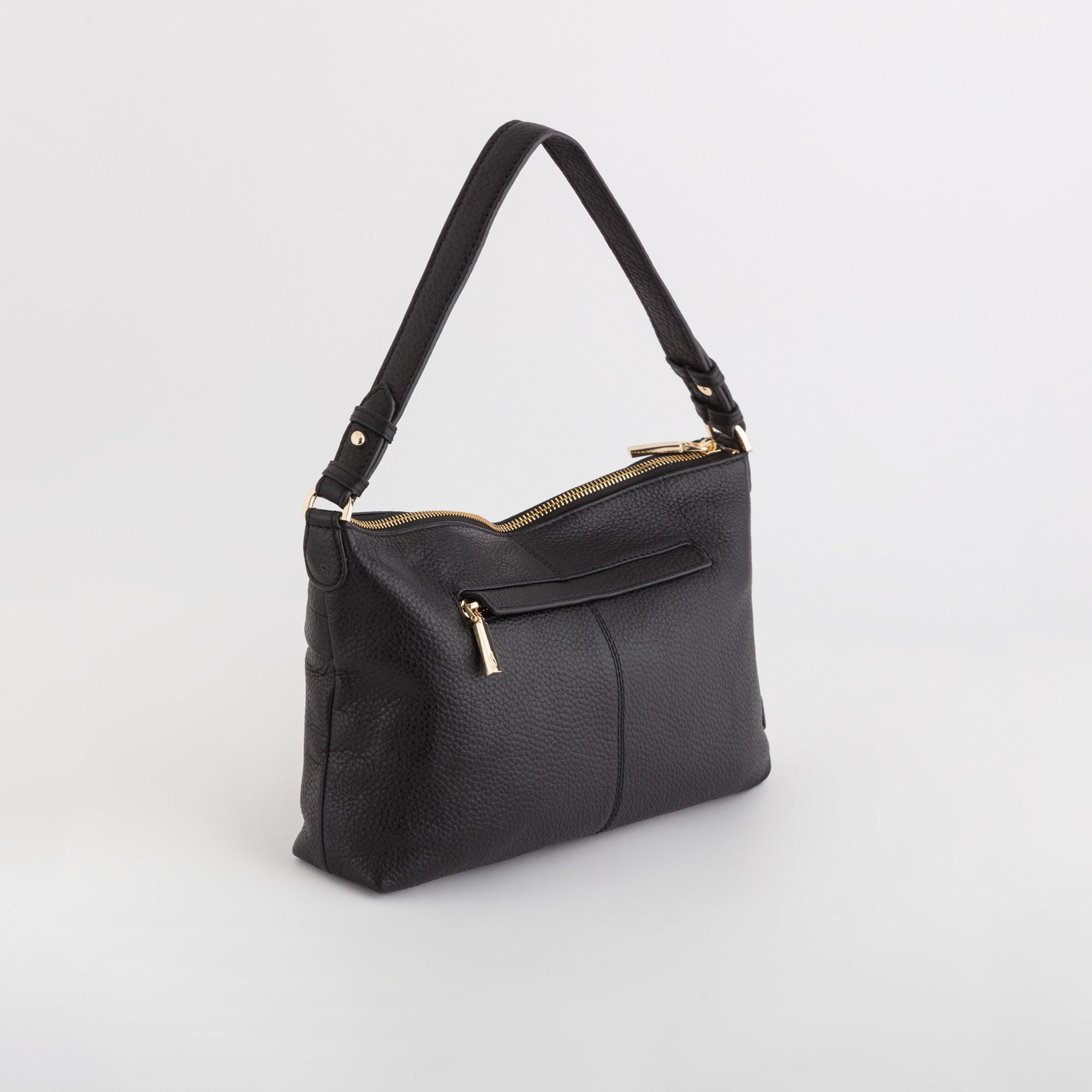 Sac bandoulière en cuir grainé de la collection Atena de Carpisa. Il est doté d’un compartiment principal zippé, de trois poches intérieures, de deux poches extérieures (une à l’avant et une à l’arrière), d’une poignée pour un porté épaule et d’une bandoulière réglable et amovible pour un porté croisé.