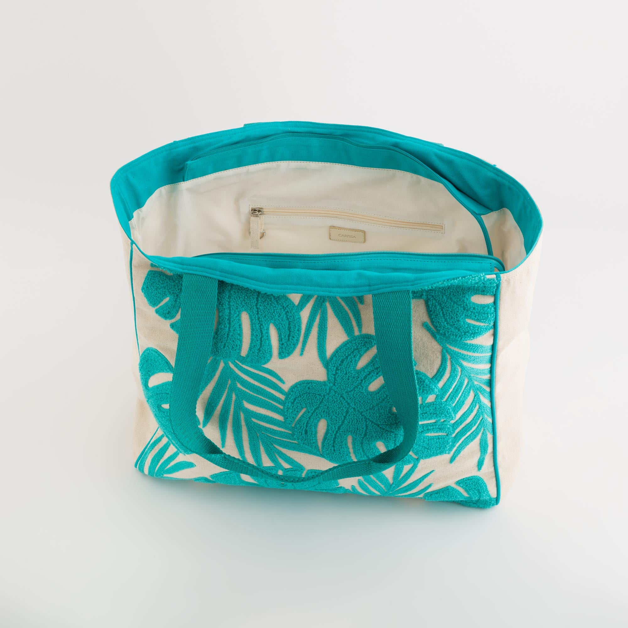Shopping de la ligne Serifo V1 de Carpisa, en toile avec finition point éponge. Cette ligne se distingue par ses couleurs vives, vibrantes et estivales.