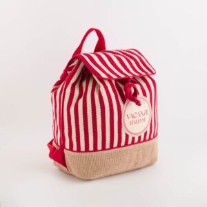 Sac à dos de la ligne Ostuni by Carpisa en tissu orient vert, entièrement imprimé d’un motif à volants multicolores rappelant la luminosité et la joie des lumières des Pouilles lors des fêtes villageoises. L’imprimé est rehaussé d’empiècements en raphia et de perles.