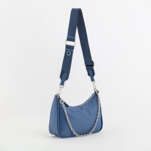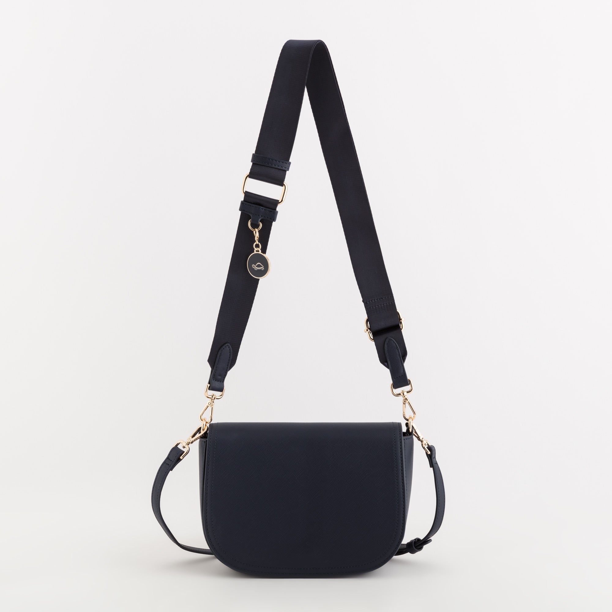 Bandoulière en ruban réglable et amovible avec médaille/breloque émaillée et logo. Bandoulière en similicuir réglable et amovible. Fermeture par zip et rabat avec clip. Deux poches intérieures, dont une zippée. Poche extérieure avec clip. Matière GREEN ORIENTED.