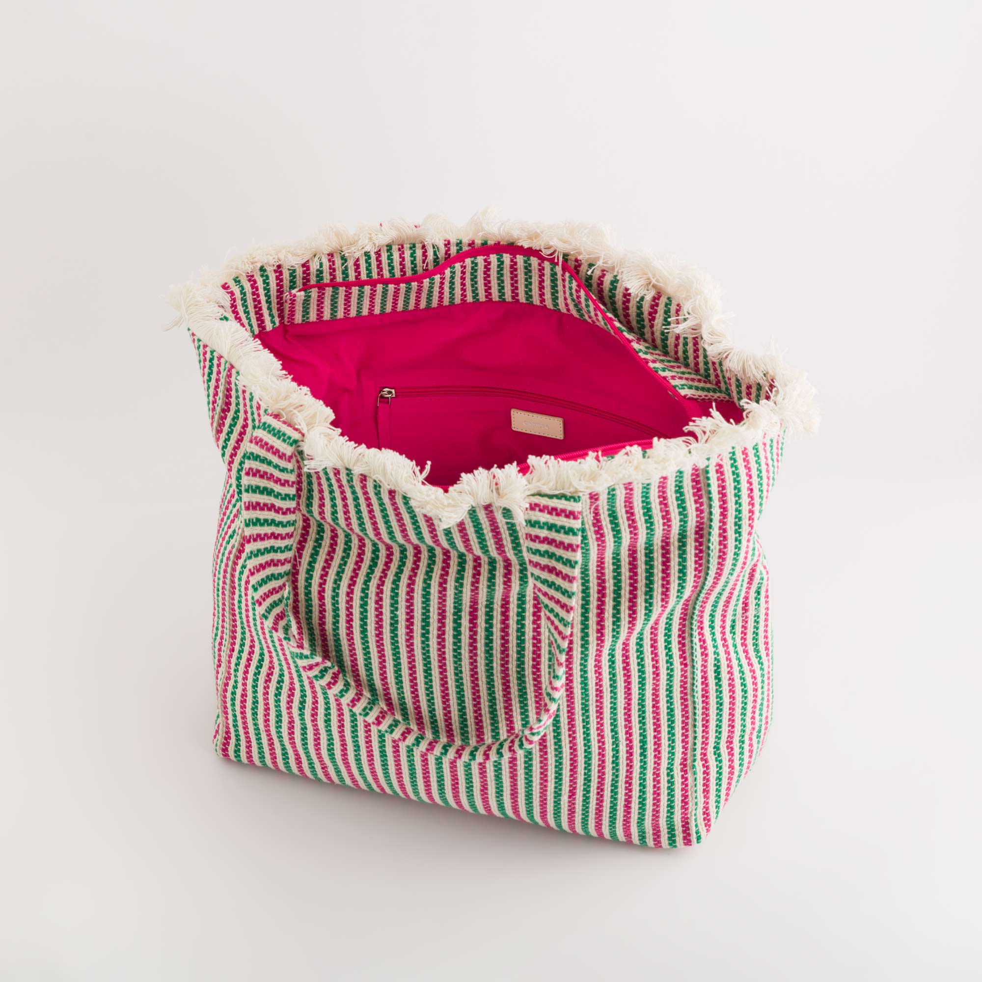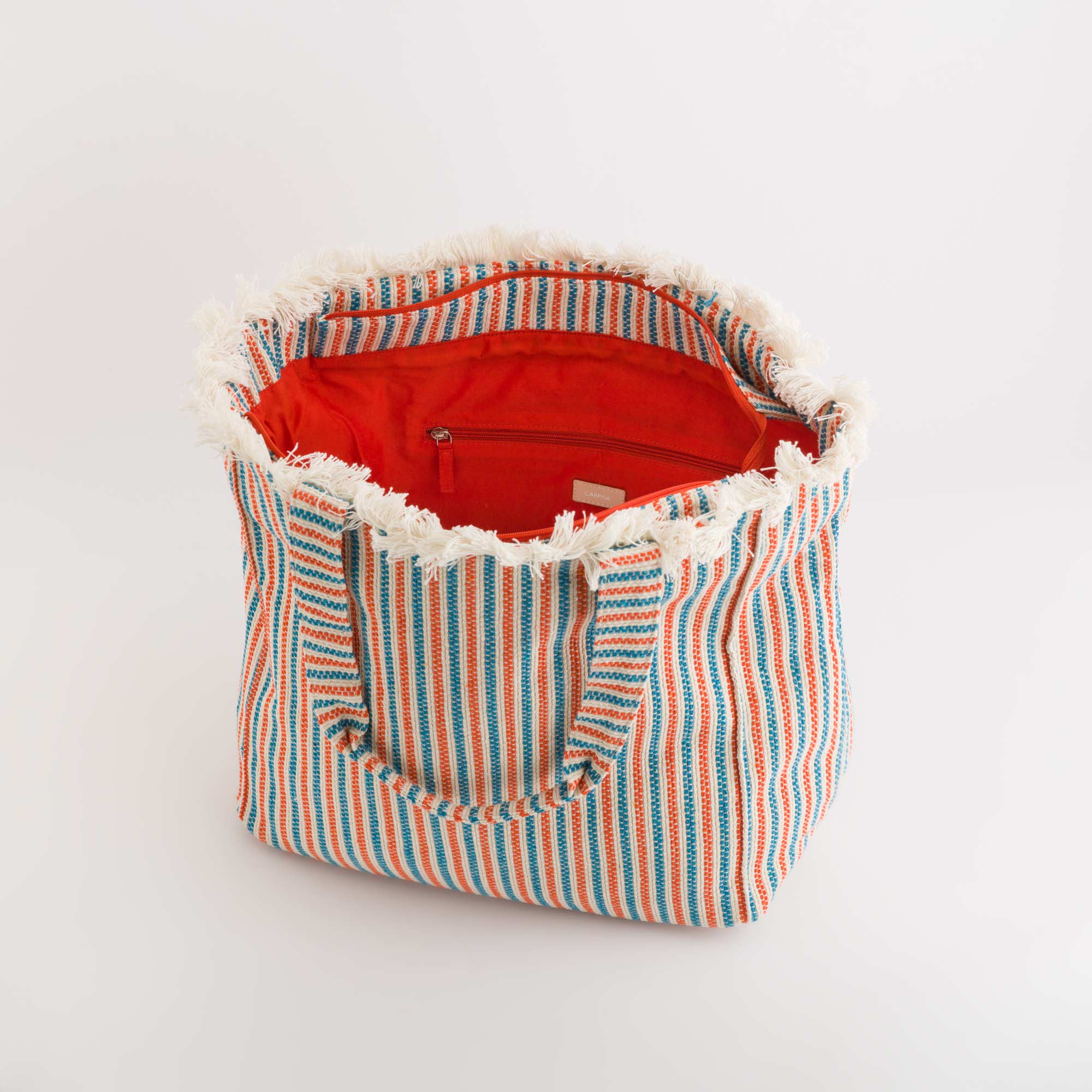 Shopping de la ligne Pianosa de Carpisa en coton et frangé sur les bords.
