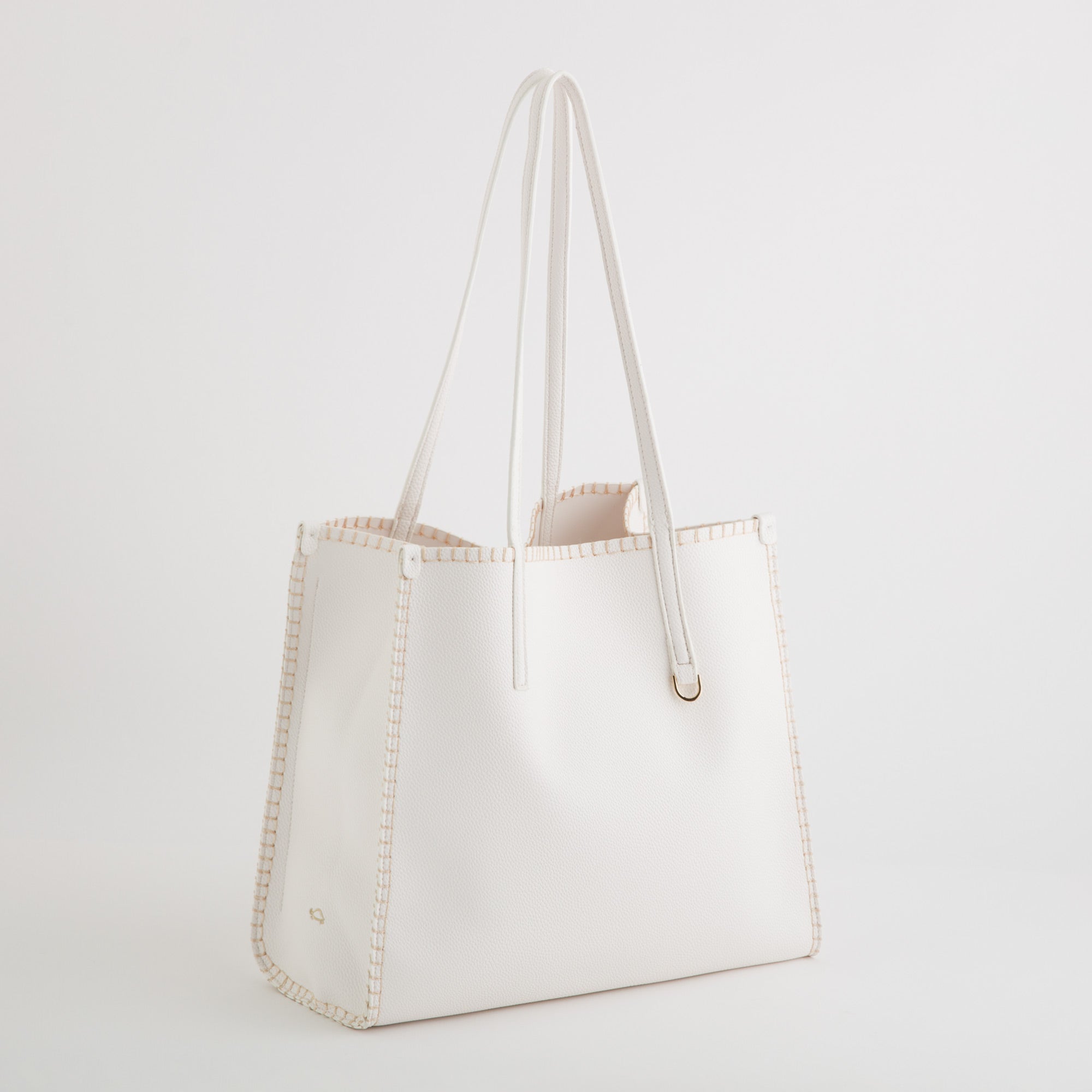 Silhouette essentielle, ornée d’un point feston sur les bords. Ce sac est doté d’une bandoulière amovible et réglable. Le petit anneau sur le devant permet d’y attacher des charms ou d’autres pendentifs.