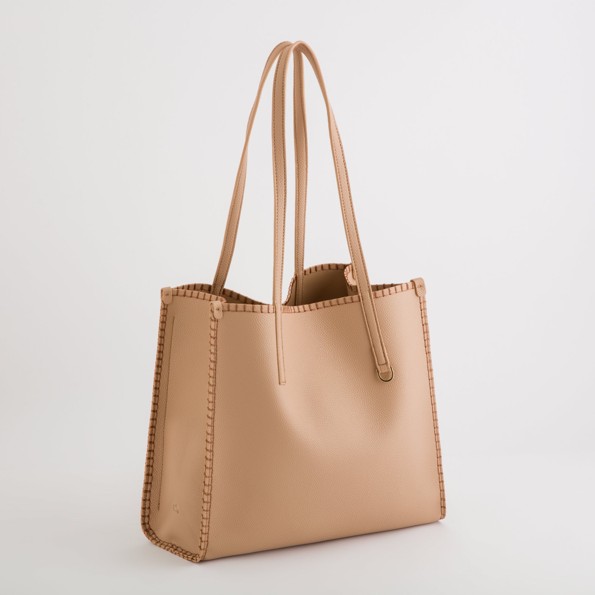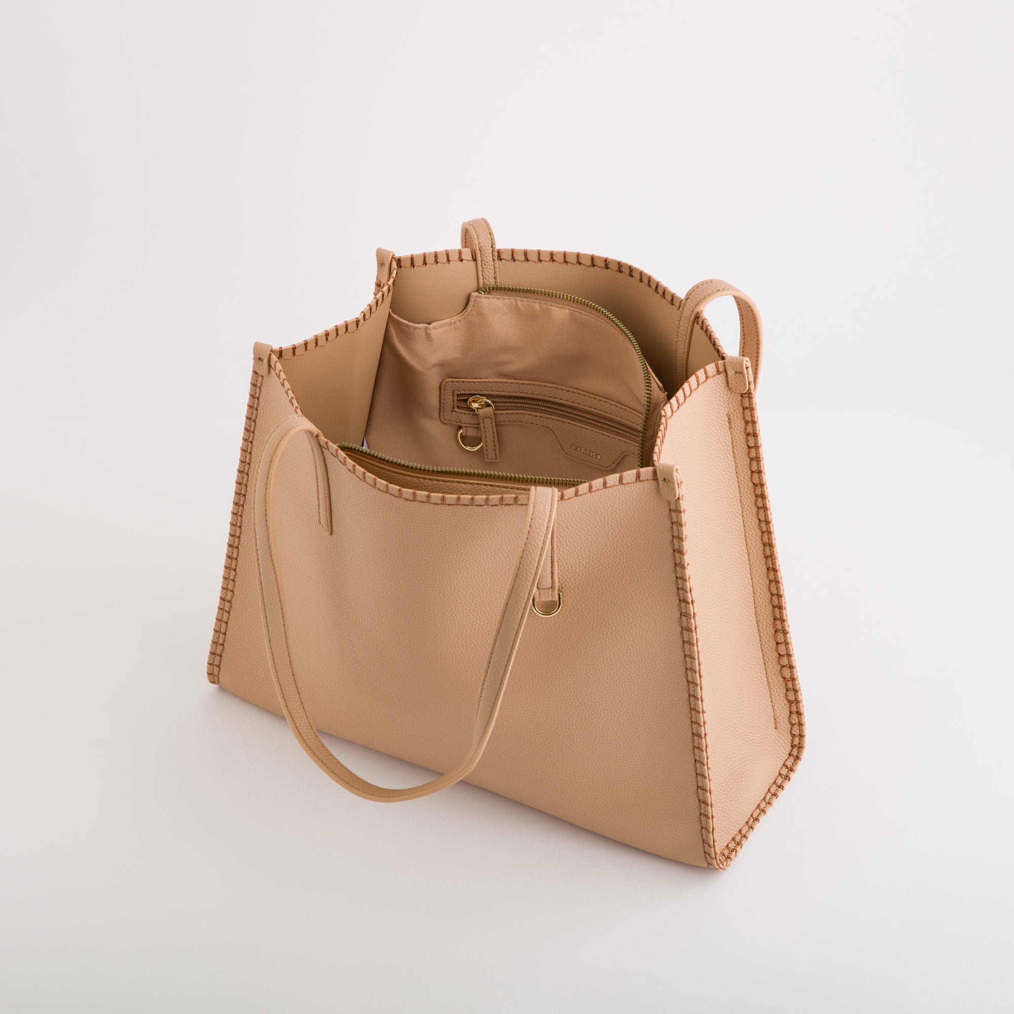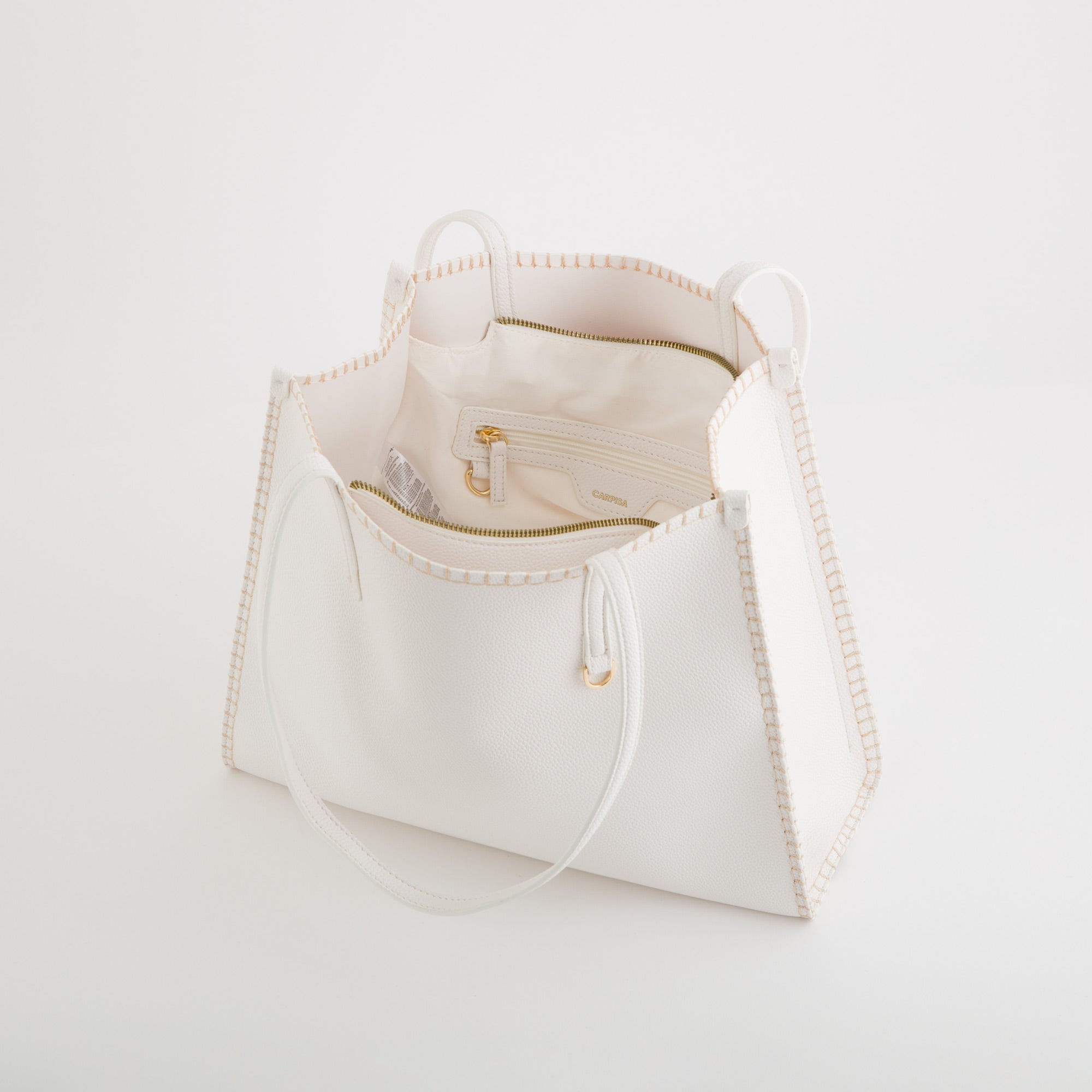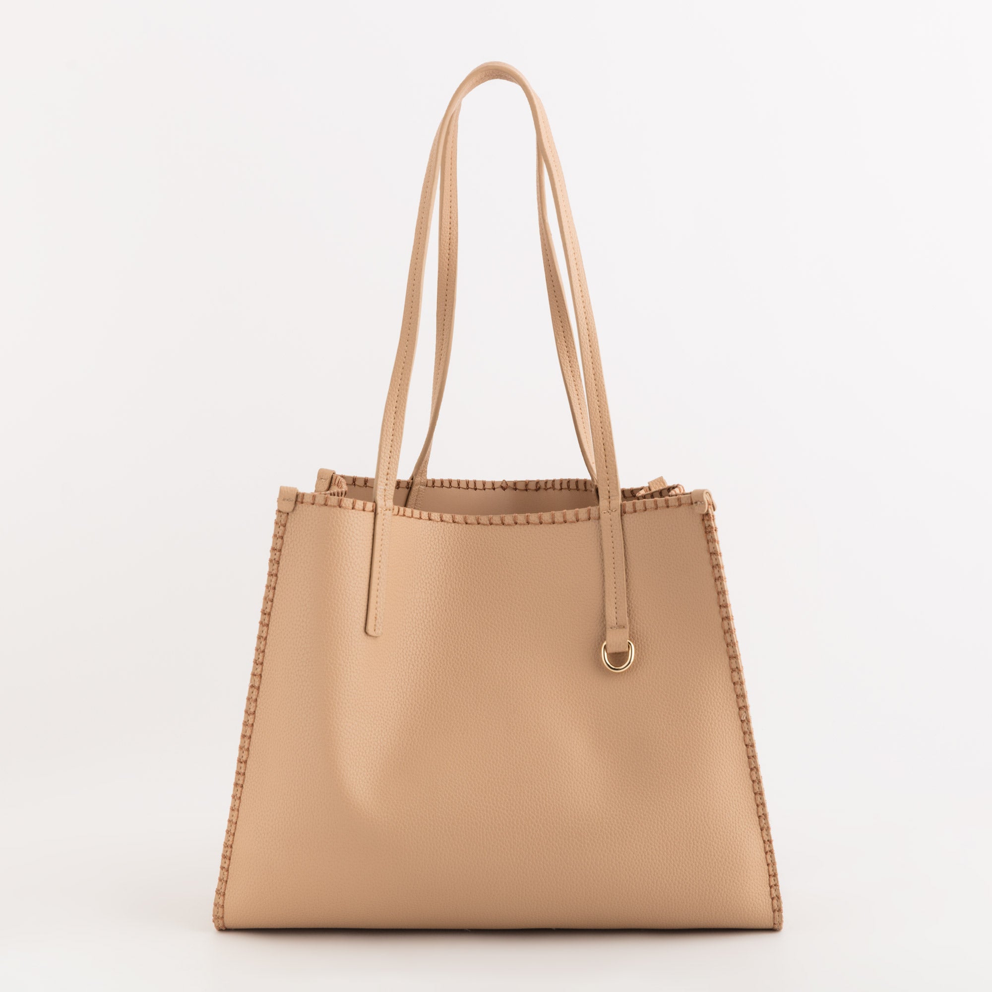 Sac shopping de la ligne Tagete de Carpisa, en PU grenat non doublé, qui lui confère légèreté et douceur.