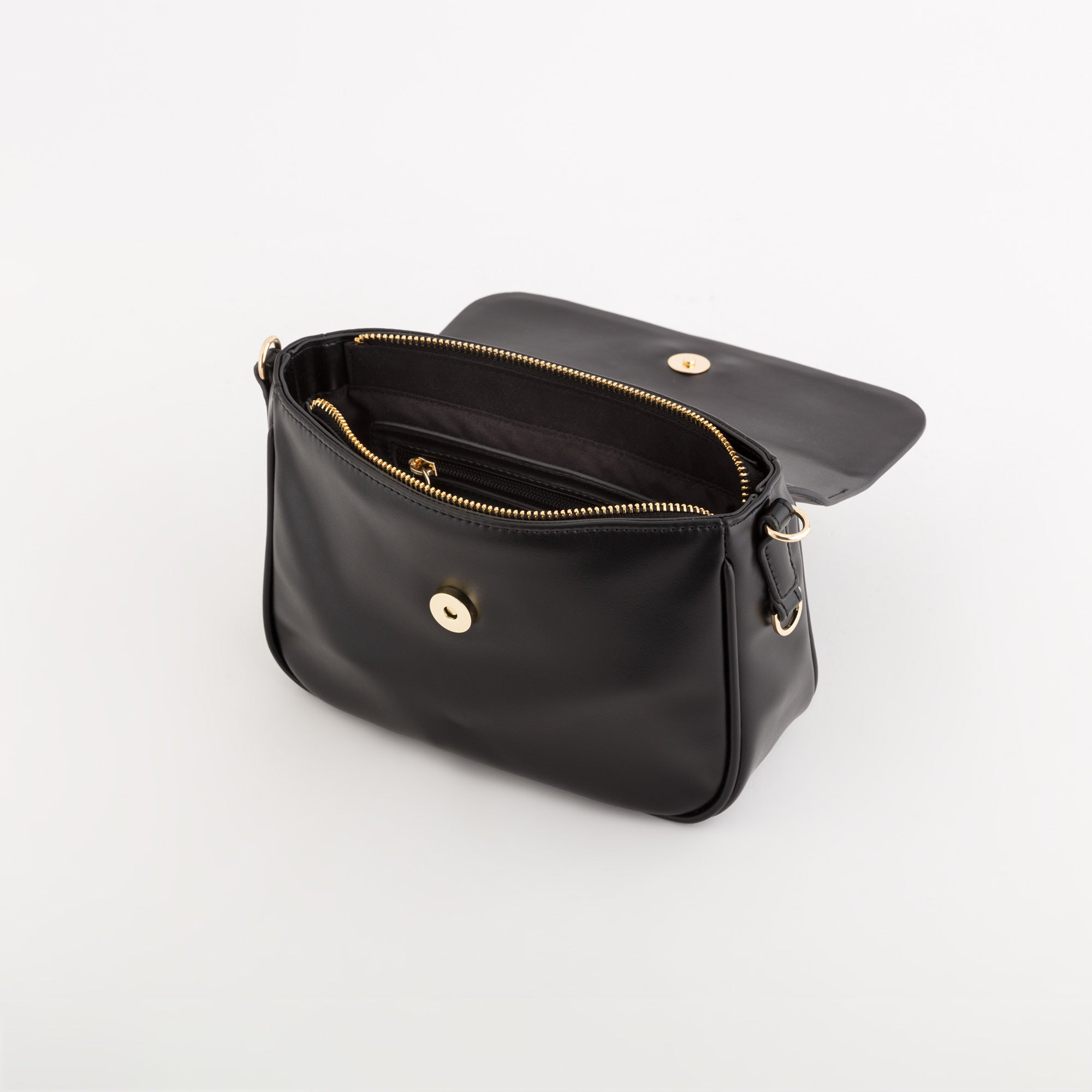 Le modèle est doté d’une fermeture zippée, de poches intérieures, d’une poche arrière et d’une bandoulière réglable et amovible.