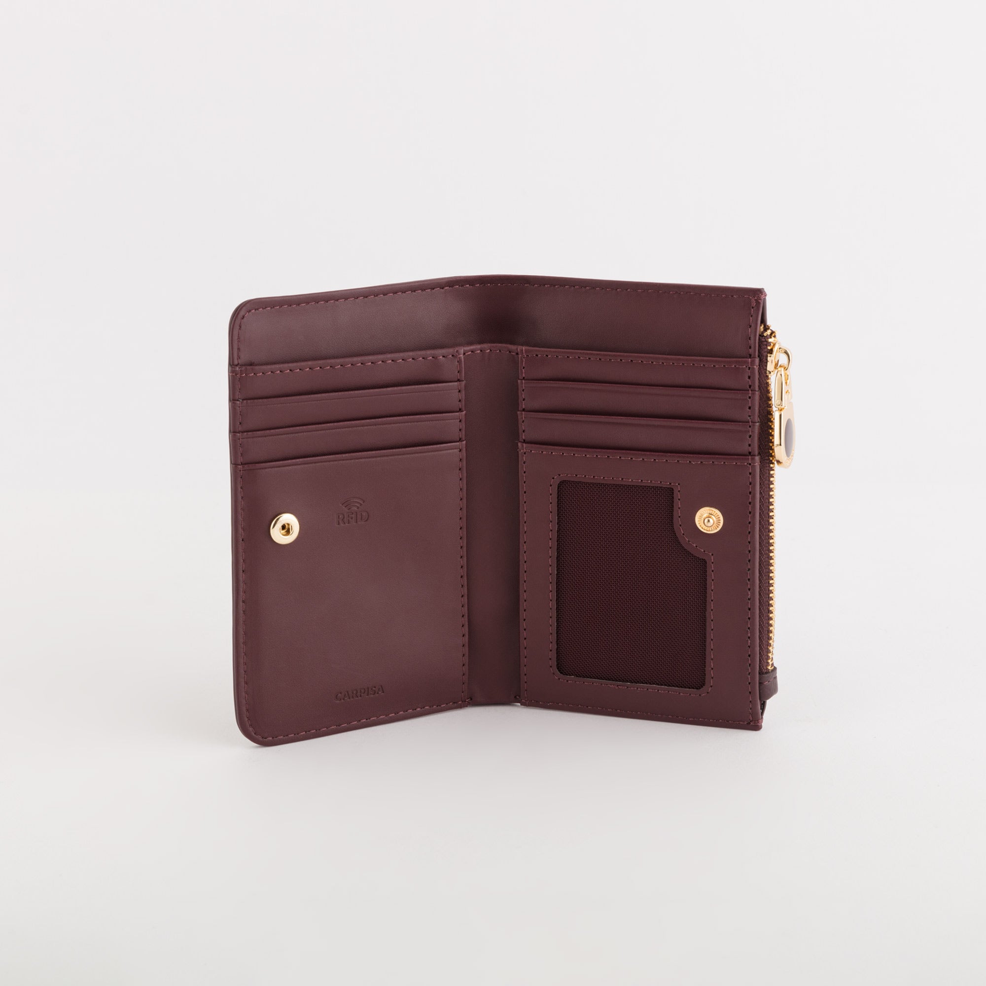 Petit portefeuille de la ligne Sitka Wallet by Carpisa en PU lisse avec accessoire logo et détails émaillés. Ce modèle est doté d’une fermeture à clip. À l’intérieur, il comprend 6 emplacements pour cartes, un compartiment pour documents, un compartiment pour billets et un porte-monnaie zippé.