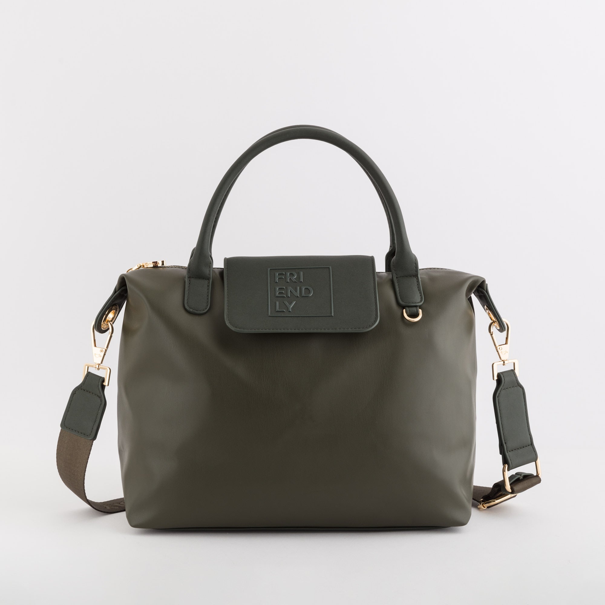 Sac à main de la ligne Olanka de Carpisa, confectionné en polyuréthane lisse effet nappa, avec anses et détails en polyuréthane lisse. Cette ligne s’inscrit dans une démarche écoresponsable grâce à l’utilisation de matériaux respectueux de l’environnement. Ce modèle est doté d’une fermeture zippée avec rabat aimanté, d’anses, d’une bandoulière ajustable et amovible, de poches intérieures et d’une poche arrière.
