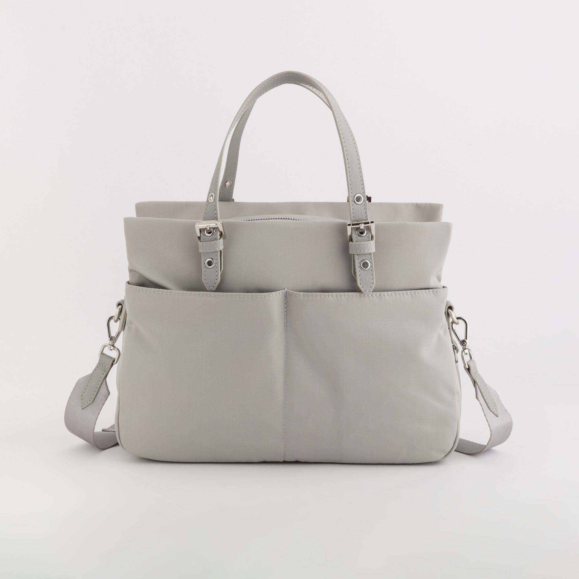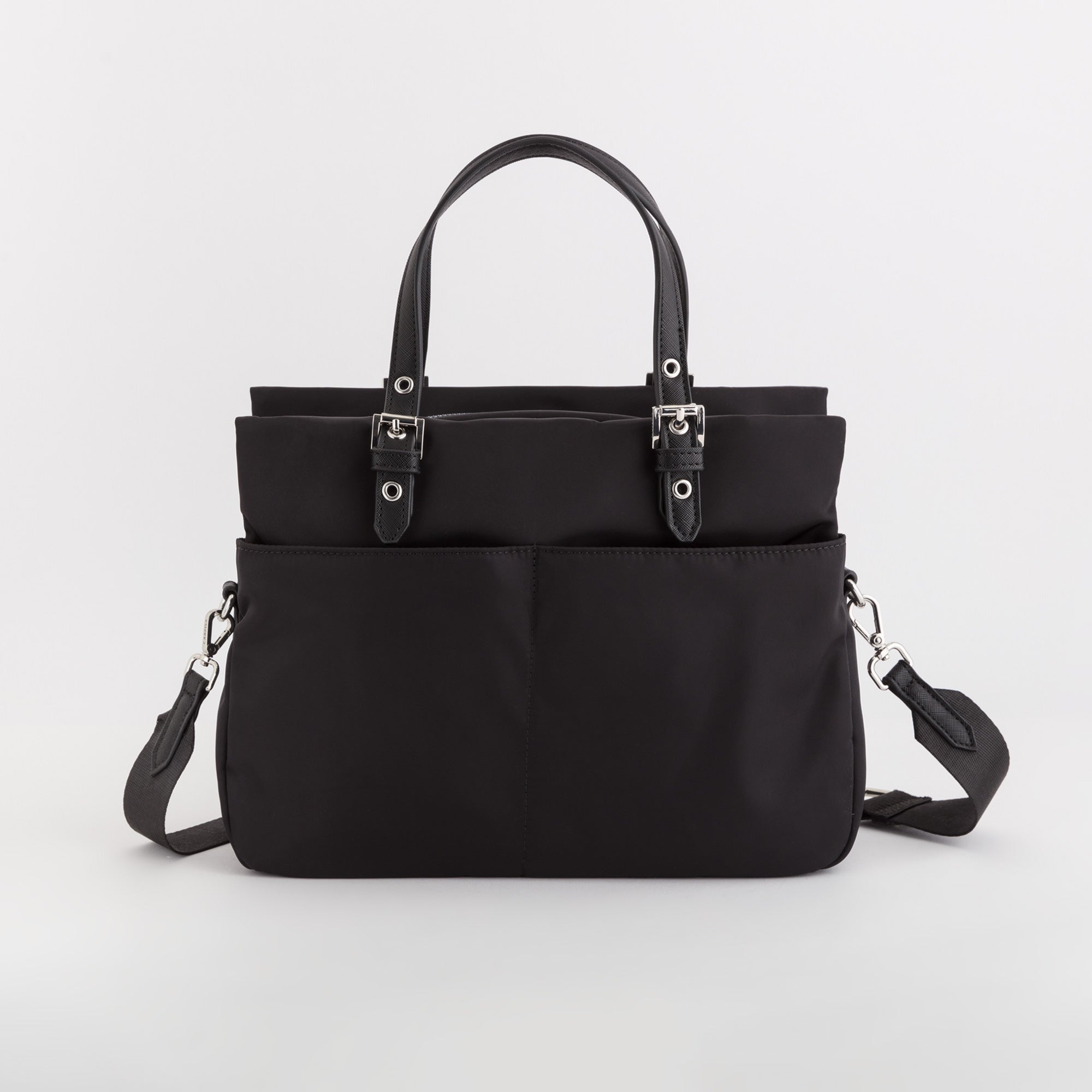 Le modèle est doté d’une fermeture zippée, de deux poignées, d’une bandoulière réglable et amovible, de trois poches intérieures et de trois poches extérieures, deux à l’avant et une à l’arrière.