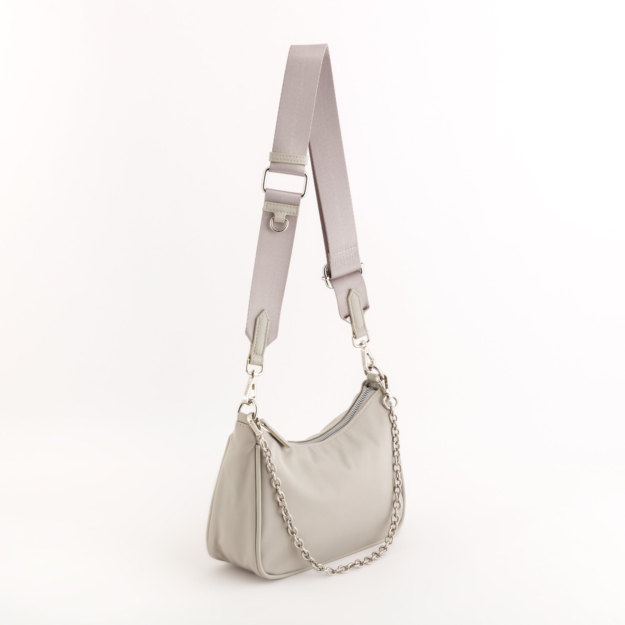 Sac baguette pour femme de la ligne Trevis by Carpisa en nylon uni. Ce sac, doté d’une anse chaîne et/ou d’une bandoulière amovible, se ferme par une fermeture éclair centrale et possède des compartiments intérieurs pour un rangement optimal de vos affaires.