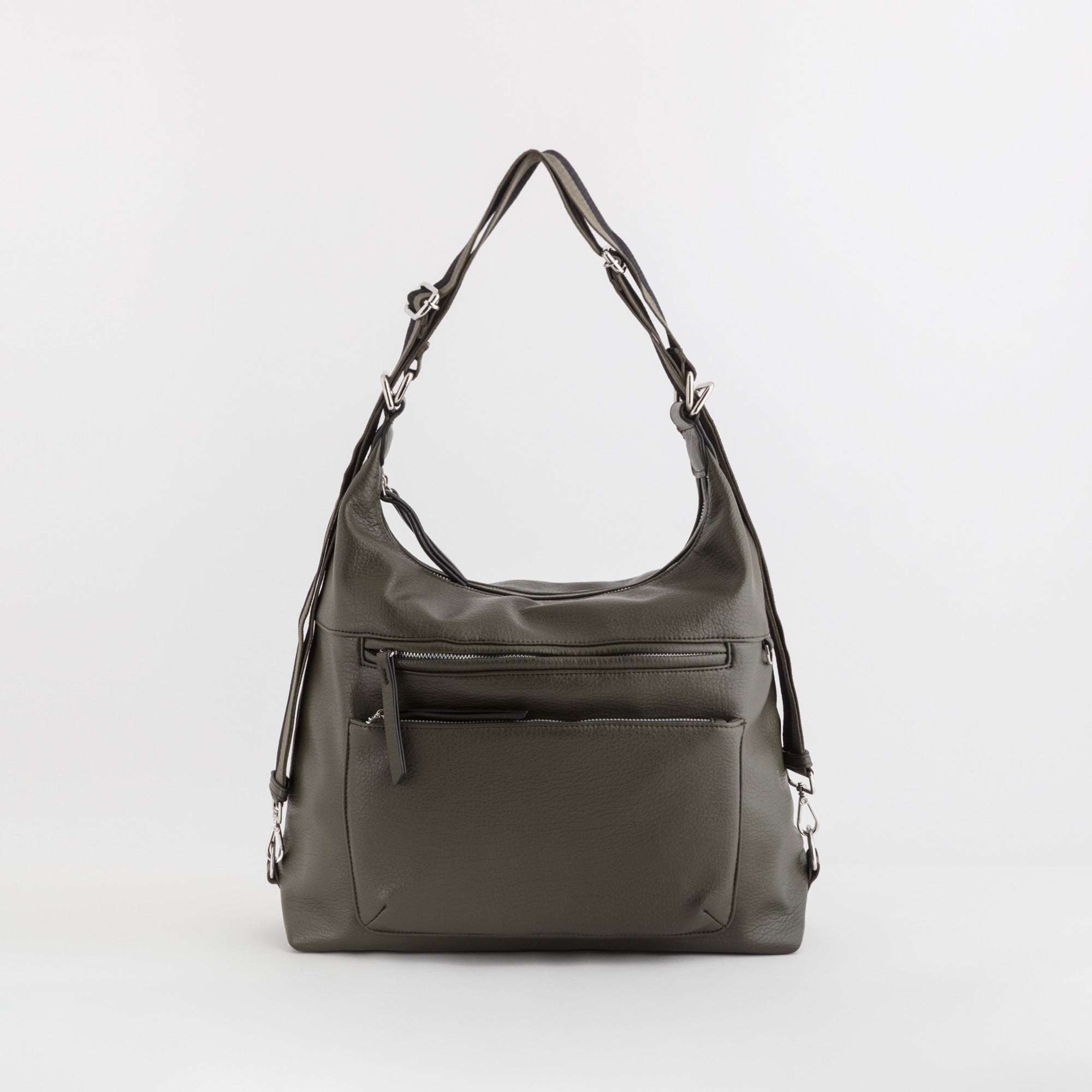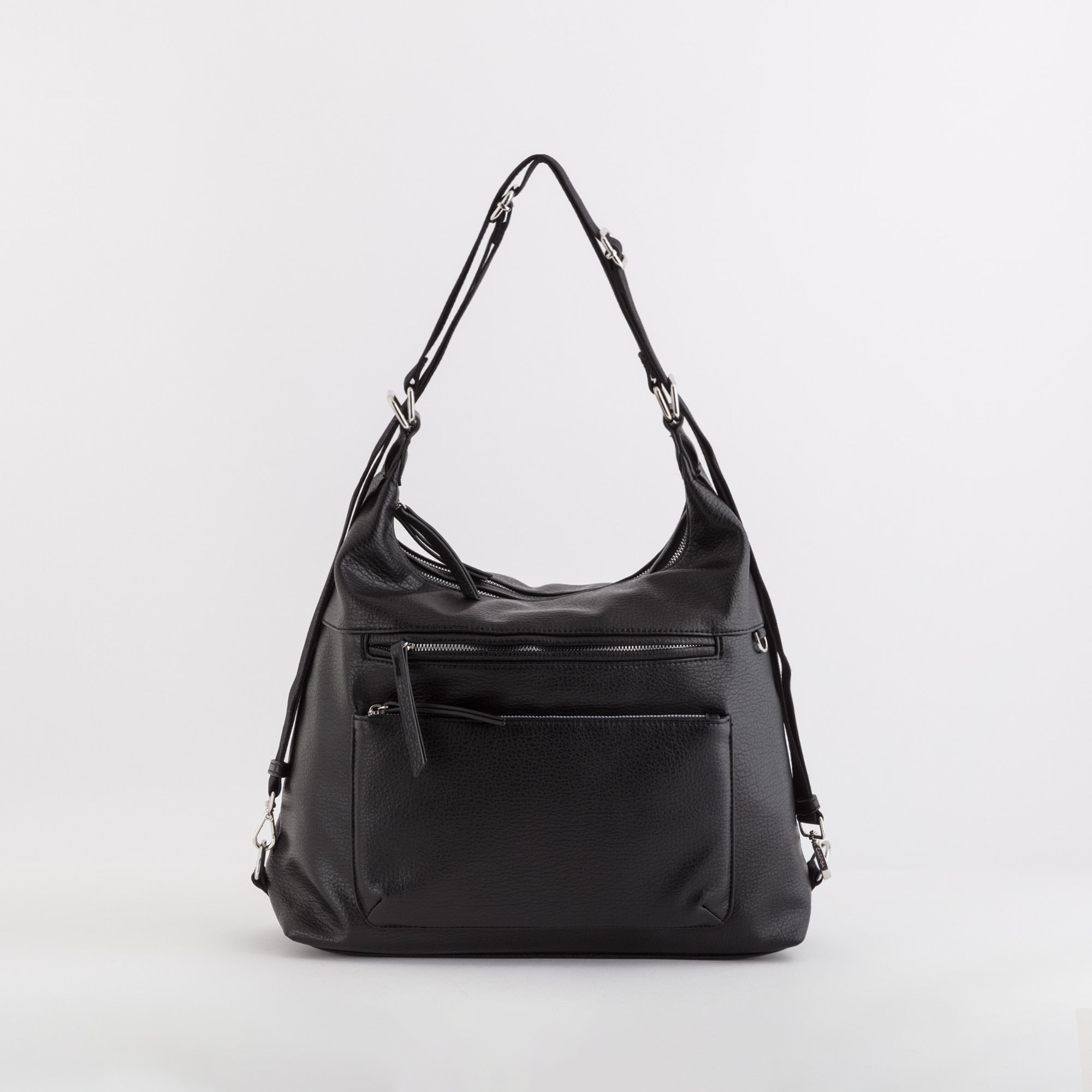 Ce modèle est doté d’un double compartiment zippé, de trois poches intérieures, deux à l’avant et une à l’arrière, et de bretelles en ruban qui peuvent être utilisées comme sac à dos ou sac bandoulière.